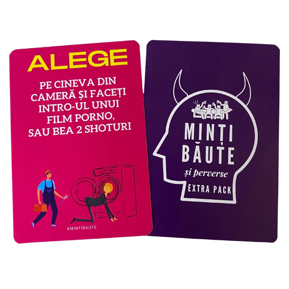Jocul de carti Minti Baute si Perverse este un extrapack la jocul de carti original Minti Baute. Acesta este pe acelasi principiu, adevar sau provocare, si poate sa fie jucat la o petrecere, cabana sau o seara cu prietenii.