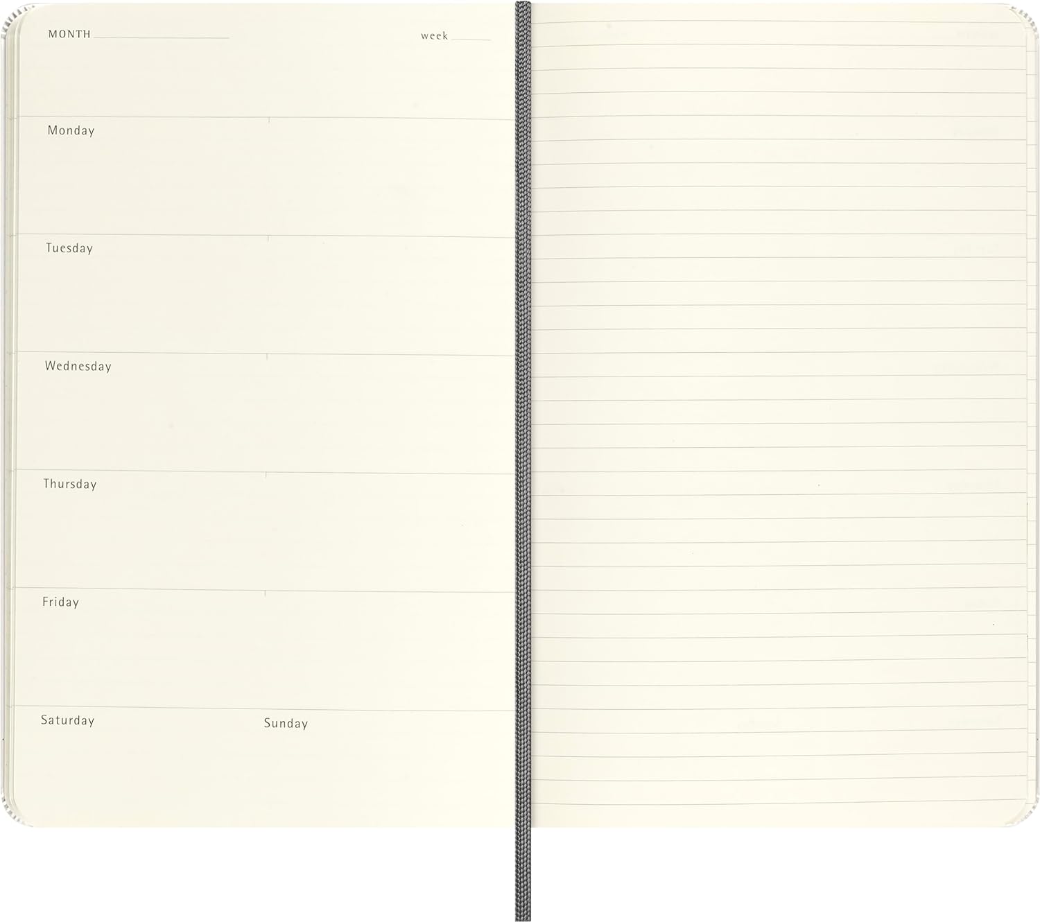 - undated weekly notebook layout with days of the week opposite a page for notes