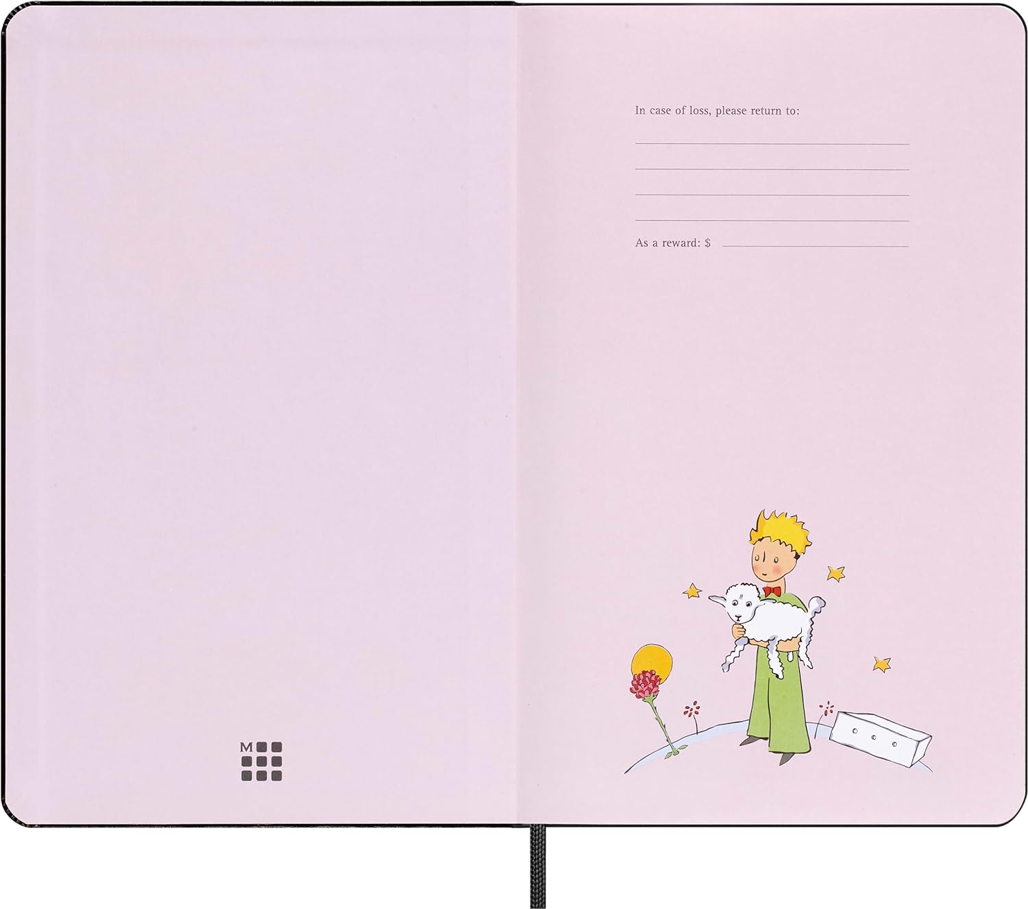 The black cover of the ruled notebook has delicate gold graphics and a quote from the story in the original French, taken from the moment when the narrator first meets the Little Prince and is asked to sketch a sheep: “S'il vous plaît… dessine-moi un mouton”. This simple exchange says much about the power of the imagination and gently reminds us to hang onto creative thinking as we leave childhood behind.