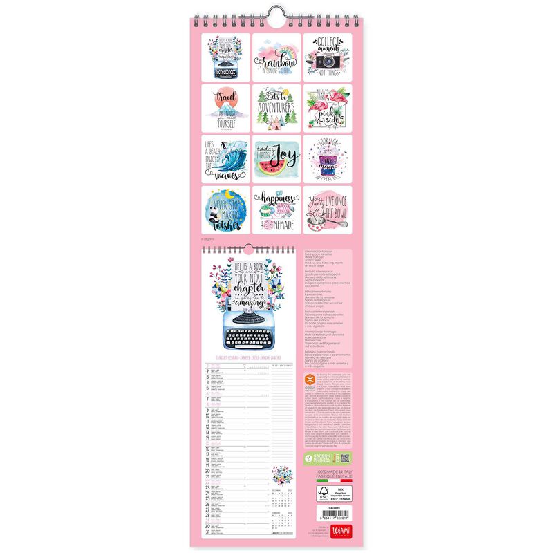 Planificarea săptămânală și sistematizarea evenimentelor sunt foarte importante, cu acest calendar totul va fi mult mai ușor. Calendarul Legami este ideal pentru decor și reprezintă totodată o sursă excelentă de inspirație.