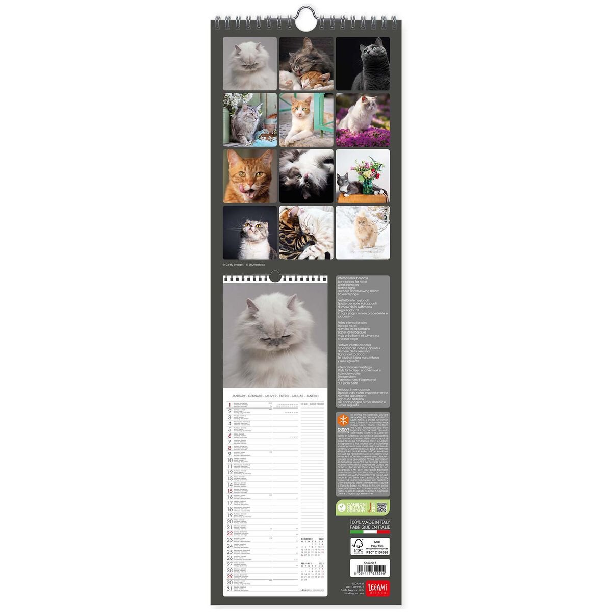 Calendar de perete 2023 - Cats, 16x49 cm