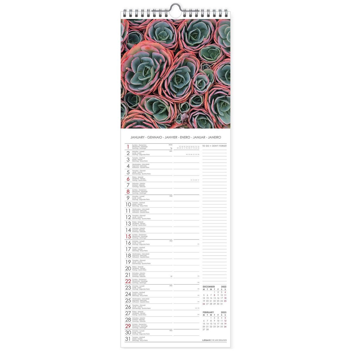 Calendar de perete 2023 - Succulents, 16x49 cm