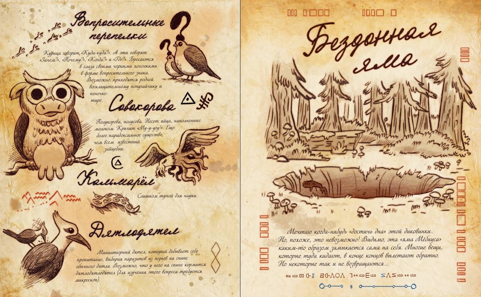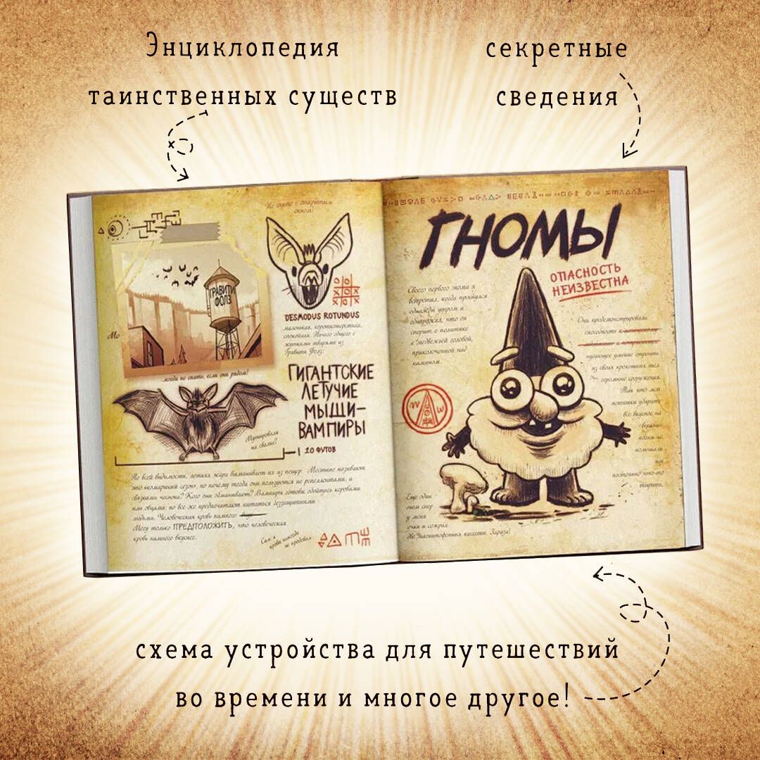 Тот самый "Дневник 3", написанный загадочным "автором", цветную и иллюстрированную сокровищницу, полную не раскрытых прежде тайн, информации о монстрах и загадок, связанных с событиями в сонном городишке Гравити Фолз. Вам предстоит узнать трагическую историю Форда, и куда девался Блендин, и что такое 52-е измерение, и как приманить клетчатого утконоса. Многие темные силы хотели бы завладеть этой книгой, так что берегитесь тех, кто попытается ее у вас отобрать (особенно если у них глаза светятся желтым!) В общем - приятного чтения!