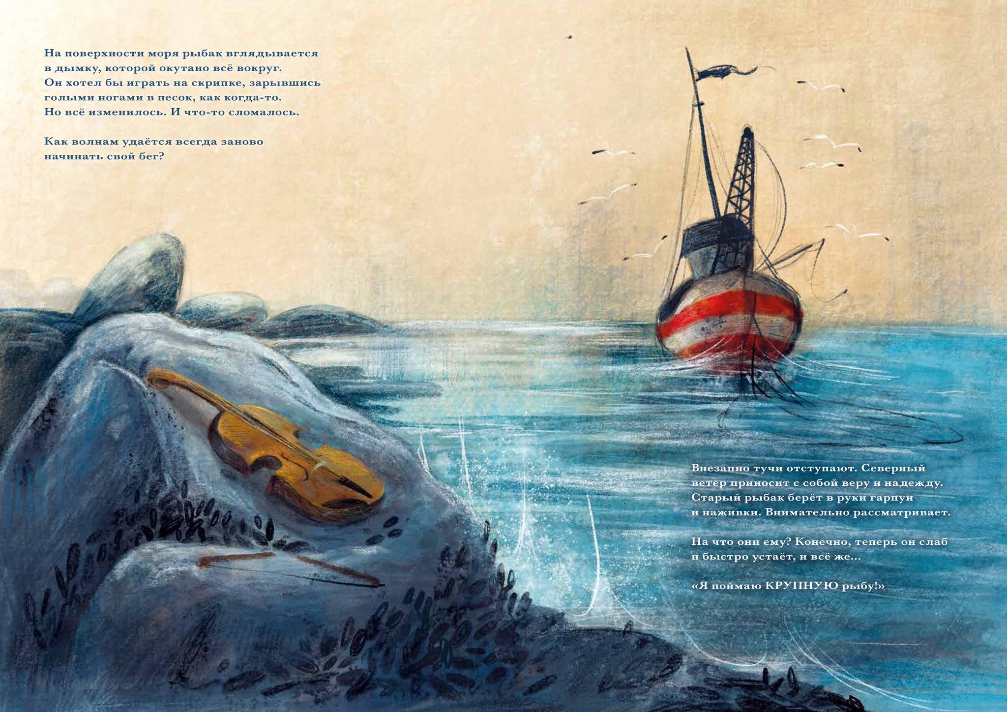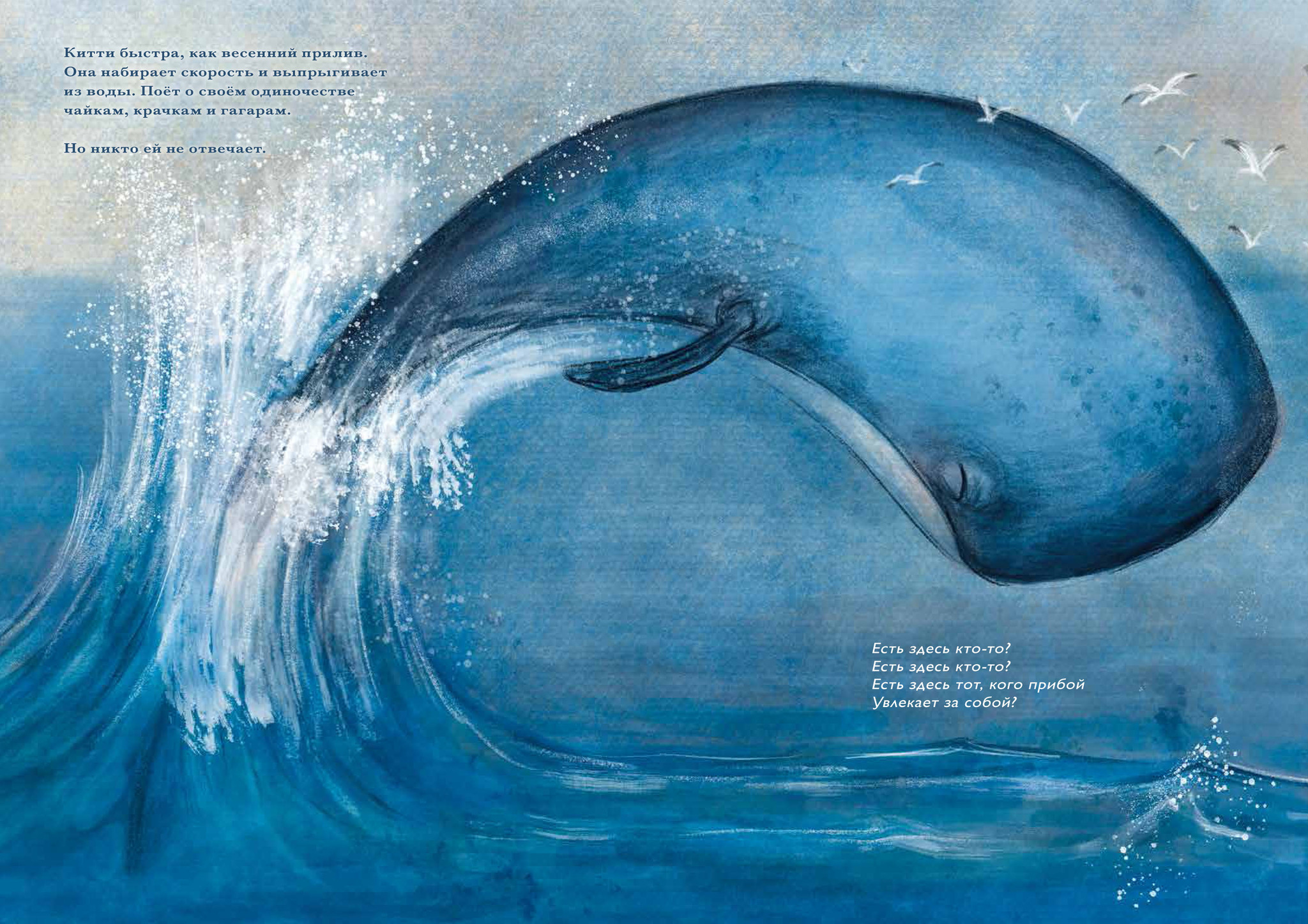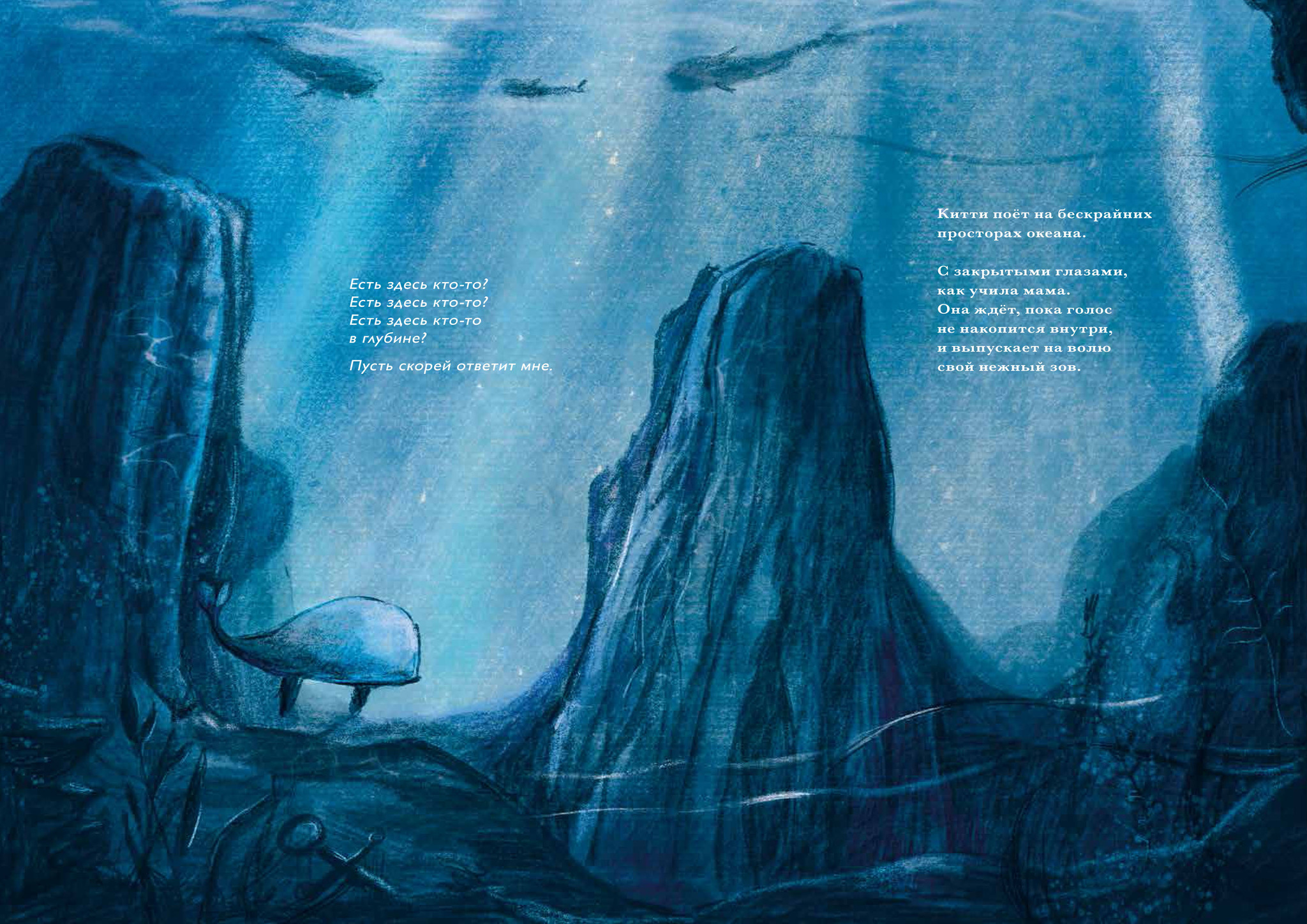 Киты тоже «поют». Причём все представители одного вида поют на одной частоте. А тех, чьё пение хоть немного отличается, их сородичи просто не слышат. Это научный факт‚ отталкиваясь от которого современные детский писатель и иллюстратор из Италии создают яркую запоминающуюся притчу об отчуждении и о возможности его преодоления — несмотря ни на что.