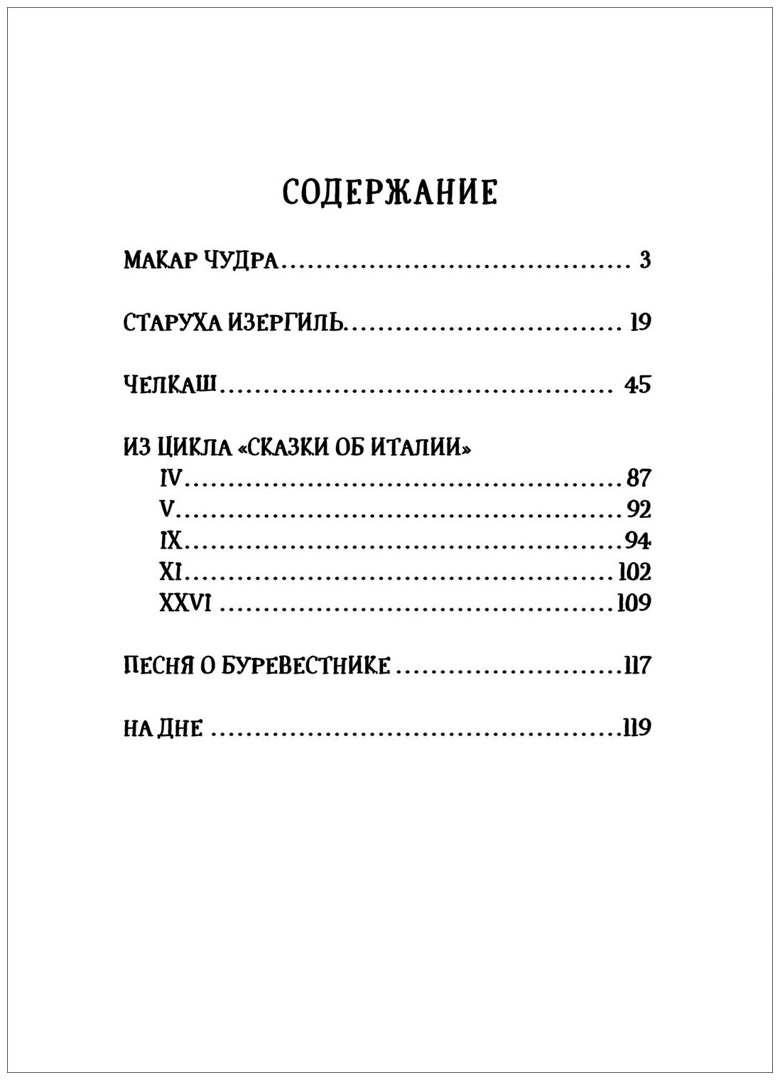 Классика русской литературы, с которой должен познакомиться каждый. Рассказы ""Макар Чудра"", ""Старуха Изергиль"", ""Челкаш"", избранные очерки из цикла ""Сказки об Италии"" и знаменитая пьеса ""На дне"", которая неоднократно ставилась на сценах европейских театров.