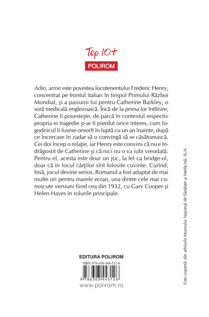 Adio, arme este povestea locotenentului Frederic Henry, concentrat pe frontul italian în timpul Primului Război Mondial, şi a pasiunii lui pentru Catherine Barkley, o soră medicală englezoaică.