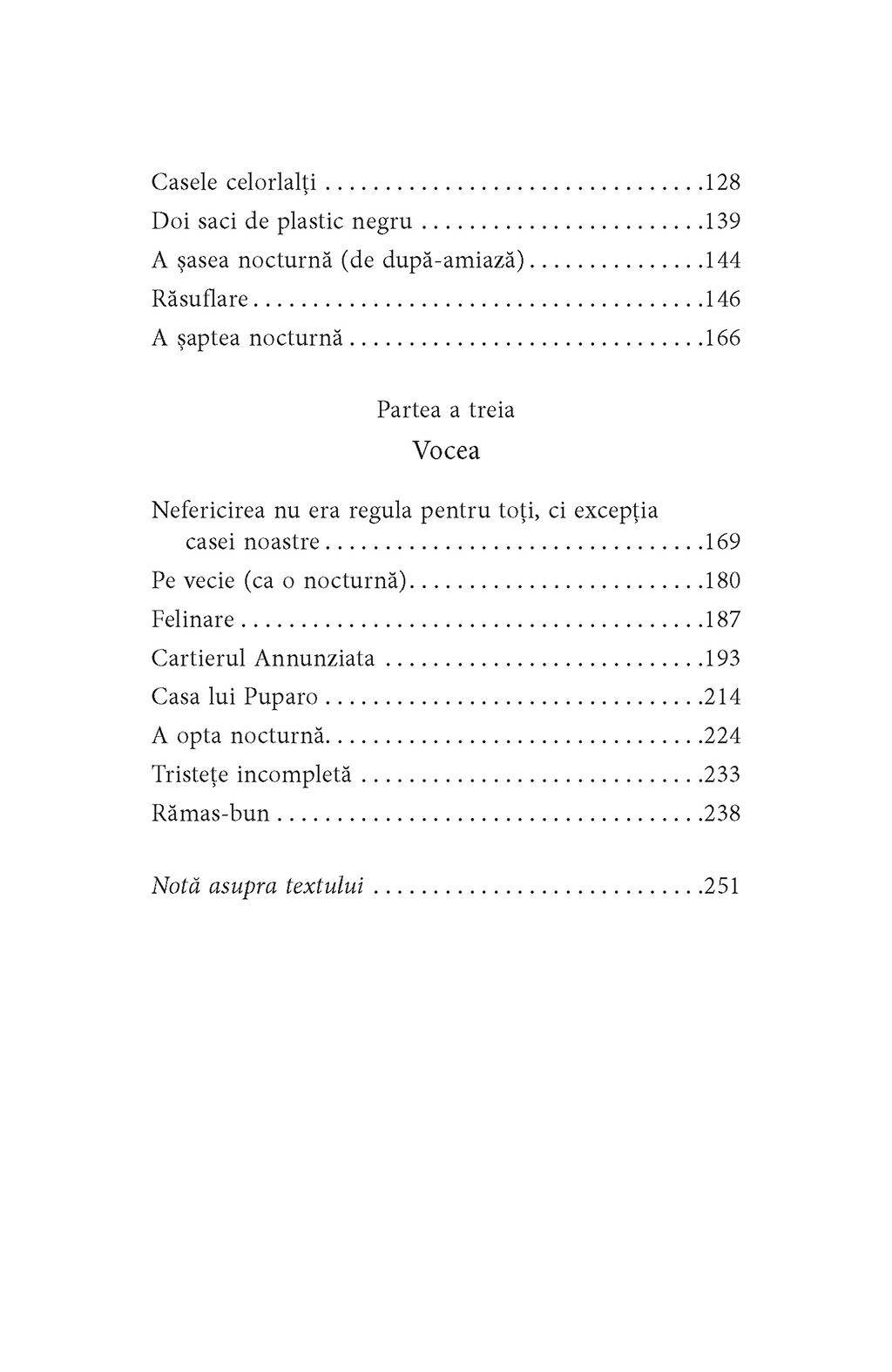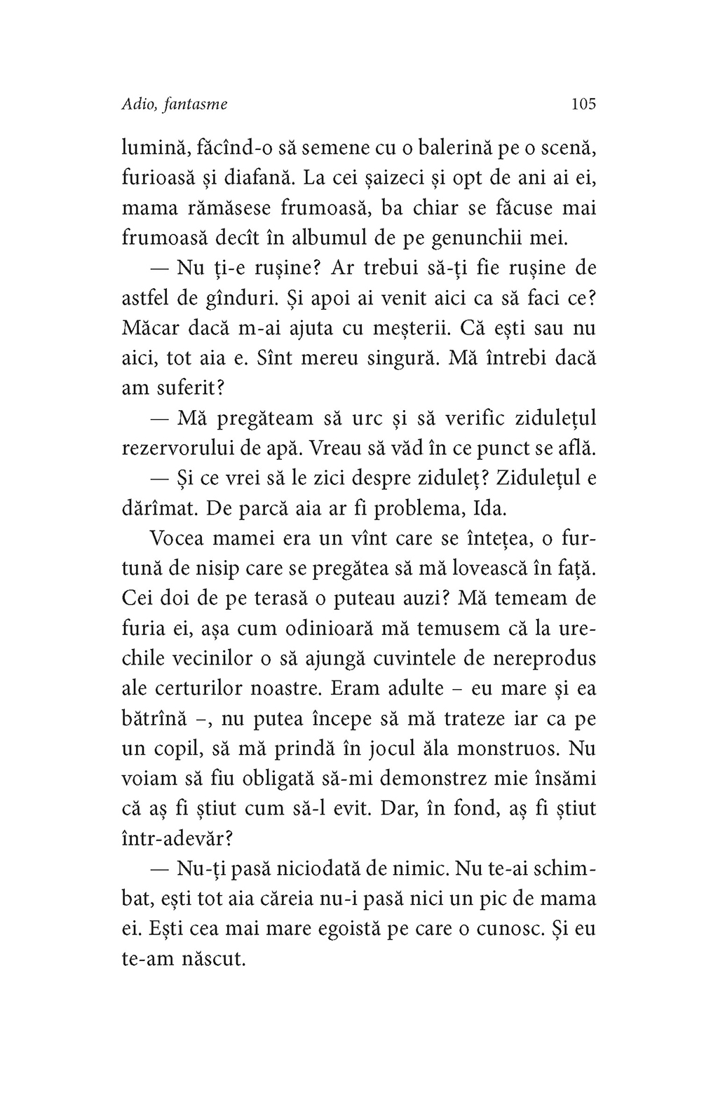 „În timp ce scriam romanul, m-am întrebat dacă sînt fantasme de la care trebuie să-mi iau rămas-bun, dar mi-am dat seama că nu există aşa ceva, că nu poţi spune adio la nimic. Trebuie doar să le înfrunţi şi să retrăieşti relaţia cu ele într-un mod diferit. Căci pînă la urmă timpul nu vindecă nimic, timpul pur şi simplu trece.” (Nadia Terranova)