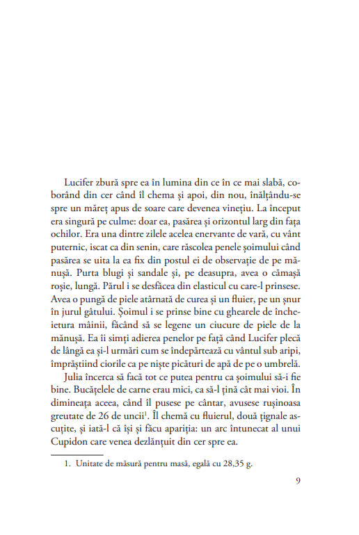 Într-o abordare modernă a Paradisului pierdut al lui John Milton, cu o scriitură elegantă, bogată stilistic, în care descrierile peisajului din centrul Angliei sunt detaliate și vii, Polly Samson surprinde dragostea dintre Julian, un student strălucit, de douăzeci și unu de ani, și Julia, mai în vârstă cu opt ani, care a renunțat la o căsnicie plină de abuzuri. În pofida sfaturilor prietenilor și ale familiei, cei doi se lasă purtați de sentimentele lor puternice, încununate de nașterea Mirei. Când fetița se îmbolnăvește grav, Julian trebuie să facă față secretului teribil din căsnicia cu Julia și imensei trădări deghizate într-un gest de bunătate.