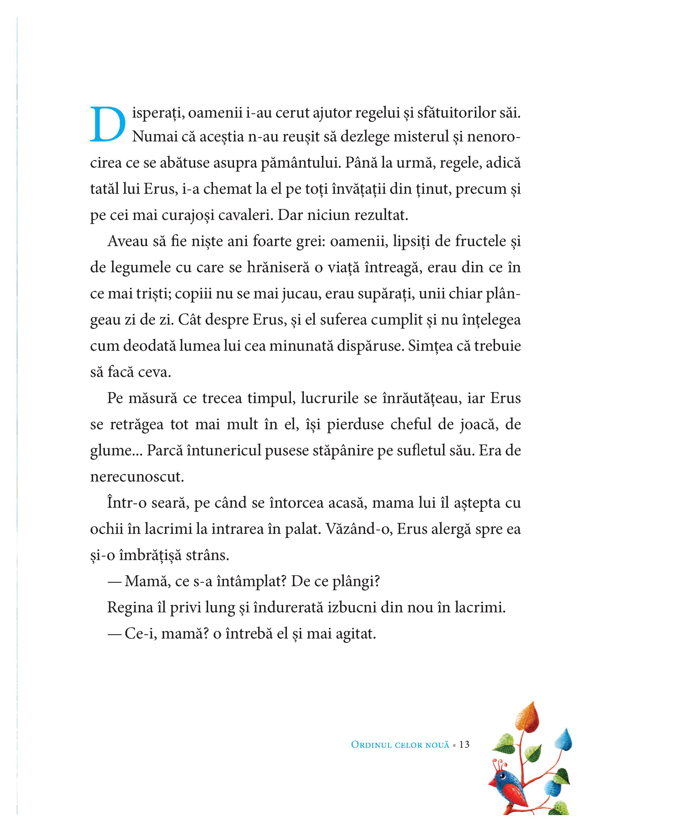 Însoțită și de o ilustrație de excepție, aventura lui Erus te transpune foarte ușor într-o lume de basm mirific, o lume a copilăriei și a imaginației.