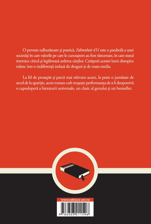 "Fahrenheit 451 merită citită și pentru că oferă speranța salvării, care răsare din mijlocul metaforelor sumbre ce au un ecou puternic și acum, la aproape 70 de ani de la apariția romanului. Ce mai recomand: citiți despre cum s-a născut ideea cărții, cum s-a dezvoltat din câteva proze scurte până a ajuns la forma finală. Interesante sunt și modurile în care a fost cenzurată; în mod ironic, acestea îi dau și mai multă forță. În concluzie: un roman care nu-ți va da pace odată ce-l vei citi." (Simina Răchițeanu)