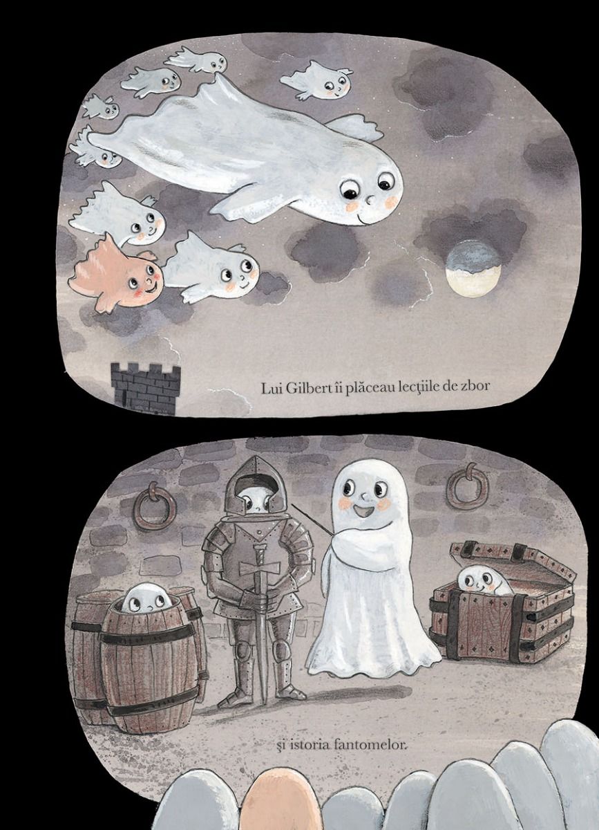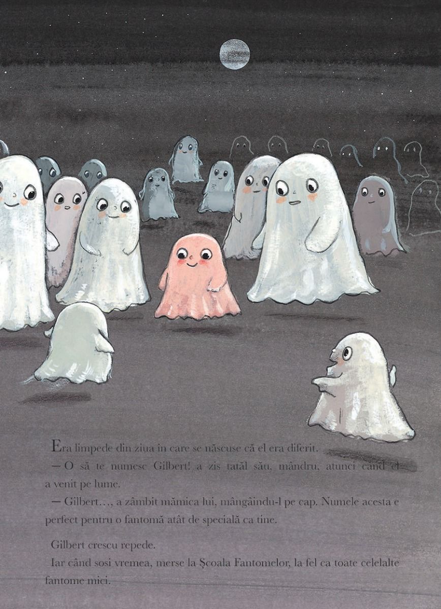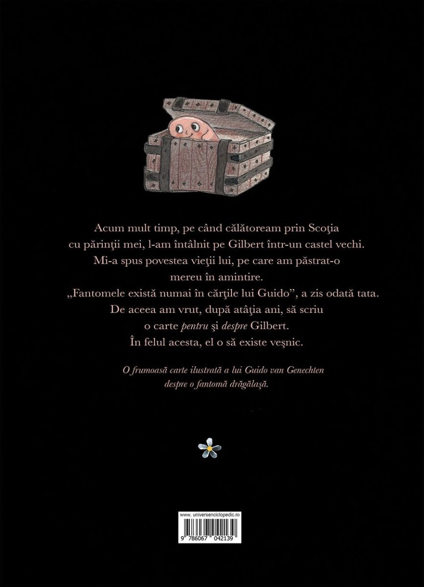 Acum mult timp, pe când călătoream prin Scoția cu părinții mei, l-am întâlnit pe Gilbert într-un castel vechi. Mi-a spus povestea vieții lui, pe care am păstrat-o mereu în amintire.„Fantomele există numai în cărțile lui Guido”, a zis odată tata. De aceea am vrut, după atâția ani, să scriu această carte pentru și despre Gilbert. În felul acesta, el o să existe veșnic. O frumoasă carte ilustrată a lui Guido von Genechten despre o mică fantomă diferită, specială.