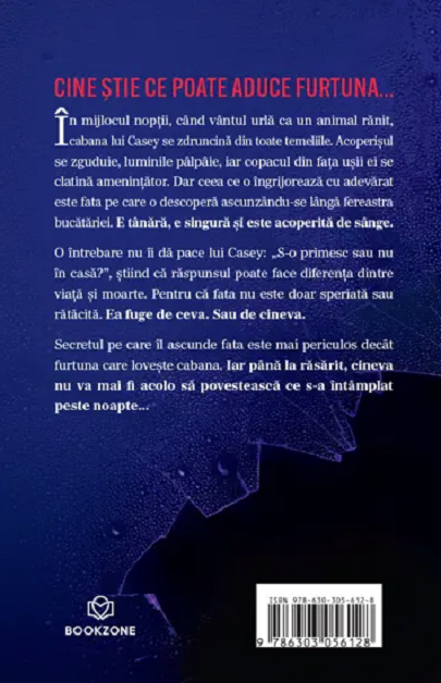 În mijlocul furtunii, cabana lui Casey se zdruncină din toate temeliile. Acoperișul se zguduie, luminile pâlpâie, iar copacul din fața ușii ei se clatină amenințător. Dar ceea ce o îngrijorează cu adevărat este fata pe care o descoperă ascunzându-se lângă fereastra bucătăriei. E tânără, e singură și este acoperită de sânge.