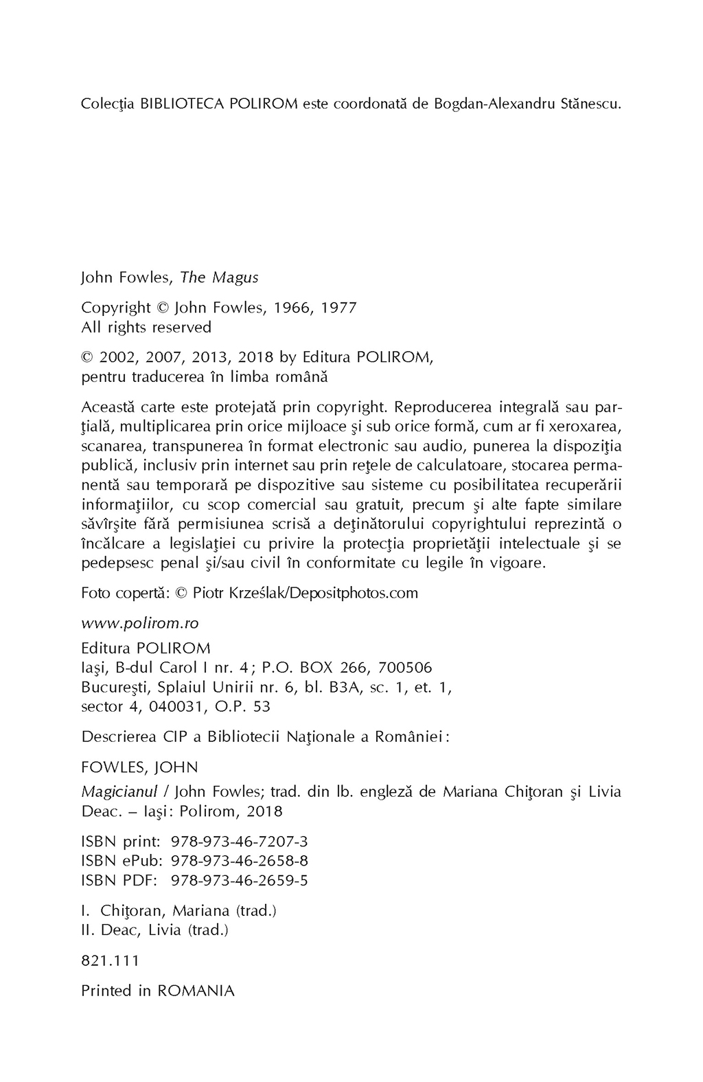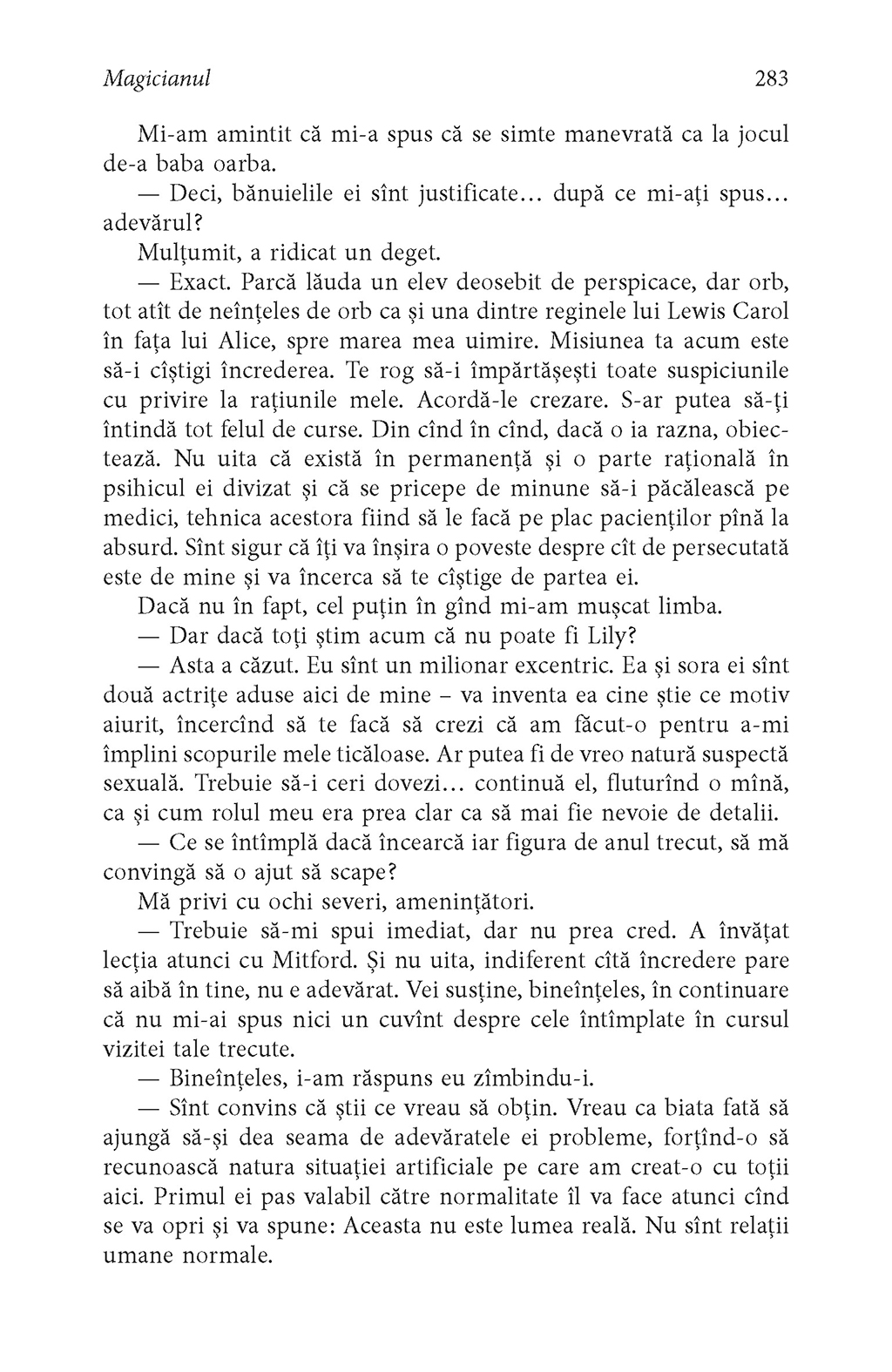 Plasată într-o insulă grecească, acţiunea romanului Magicianul pivotează în jurul tînărului profesor de engleză Nicholas Urfe, supus unui lung şir de încercări – prin spectaculoase jocuri cu măşti şi psihodrame în care abundă fantasmele erotice şi manipularea istoriei – de către „magicianul” Conchis. Unul din marile romane ale secolului XX, Magicianul a fost ecranizat în anul 1968, în regia lui Guy Green, avîndu-i în rolurile principale pe Michael Caine, Anthony Quinn şi Candice Bergen.