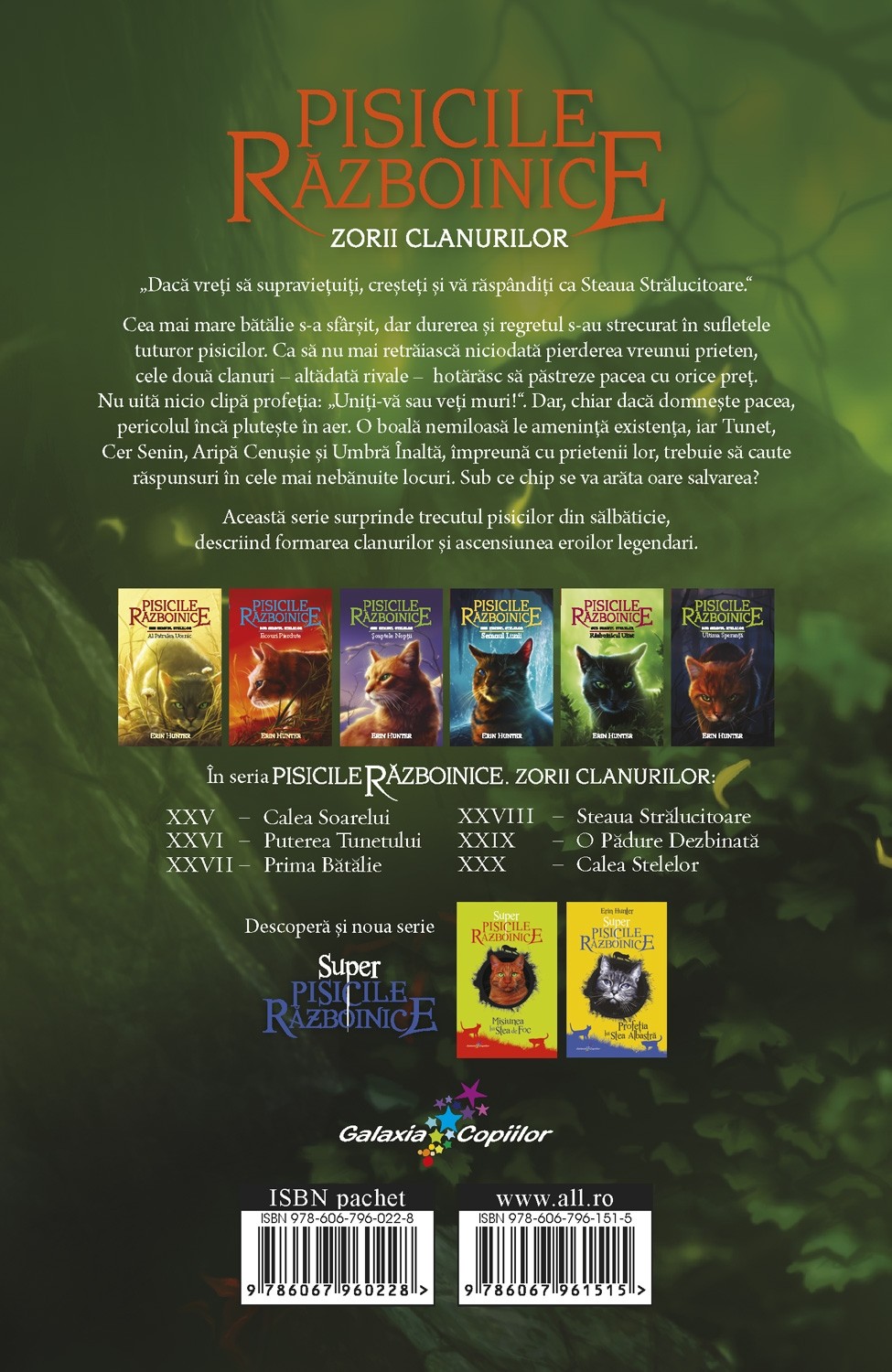 Zorii Clanurilor, a cincea serie de romane Fantasy cu pisici, întrerupe firul poveștii din primele patru serii, pentru a-și purta cititorii în trecutul personajelor preferate. Aventurile din vremurile de demult le dezvăluie fanilor cum s-au format clanurile și cum s-a produs ascensiunea eroilor legendari.