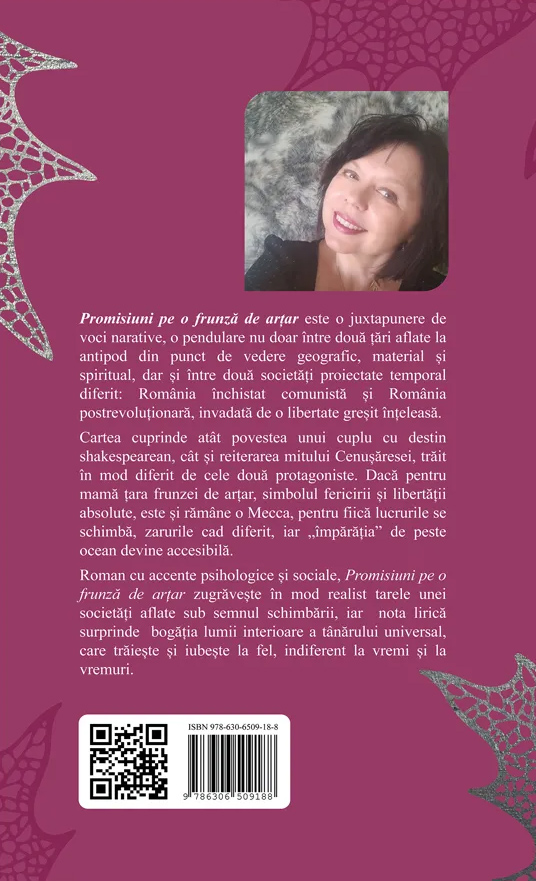 Roman cu accente psihologice și sociale, Promisiuni pe o frunză de arțar, zugrăvește în mod realist tarele unei societăți aflate sub semnul schimbării, iar nota lirică surprinde bogăția lumii interioare a tânărului universal, care trăiește și iubește la fel, indiferent la vremi și la vremuri.