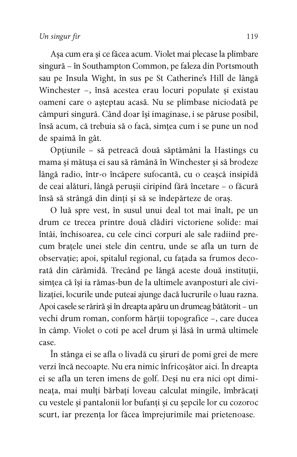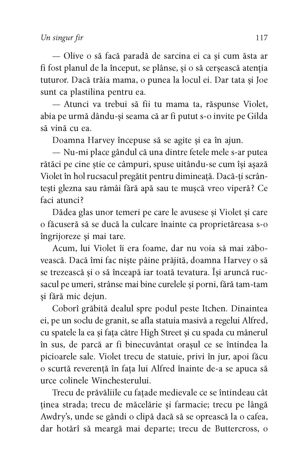 După ce Primul Război Mondial i-a răpit fratele şi logodnicul, Violet Speedwell a devenit o „femeie de prisos”, fără şansa de a avea familie. La 38 de ani, lucrează ca dactilografă pentru o companie de asigurări. Dorinţa de independenţă o îndeamnă să se mute la Winchester, la mică distanţă de mama ei (o femeie înrăită de doliu). Într-o zi în care vizitează maiestuoasa catedrală din oraş, nimereşte la o slujbă unde se sfinţesc pernele de rugăciune cusute de Grupul de brodeze al Catedralei. Aici, Violet se împrieteneşte cu exuberanta Gilda, lucru care-i va pune la încercare curajul cînd aceasta îşi va declara public dragostea pentru Dorothy, una dintre cele mai talentate brodeze. Însă şi ea are propriile secrete: e atrasă de Arthur, un clopotar însurat. Cînd forţe exterioare îi ameninţă greu cîştigata independenţă şi la orizont se iveşte perspectiva unui nou război, Violet trebuie să lupte din toate puterile să prindă rădăcini într-un loc neprielnic femeilor de prisos.