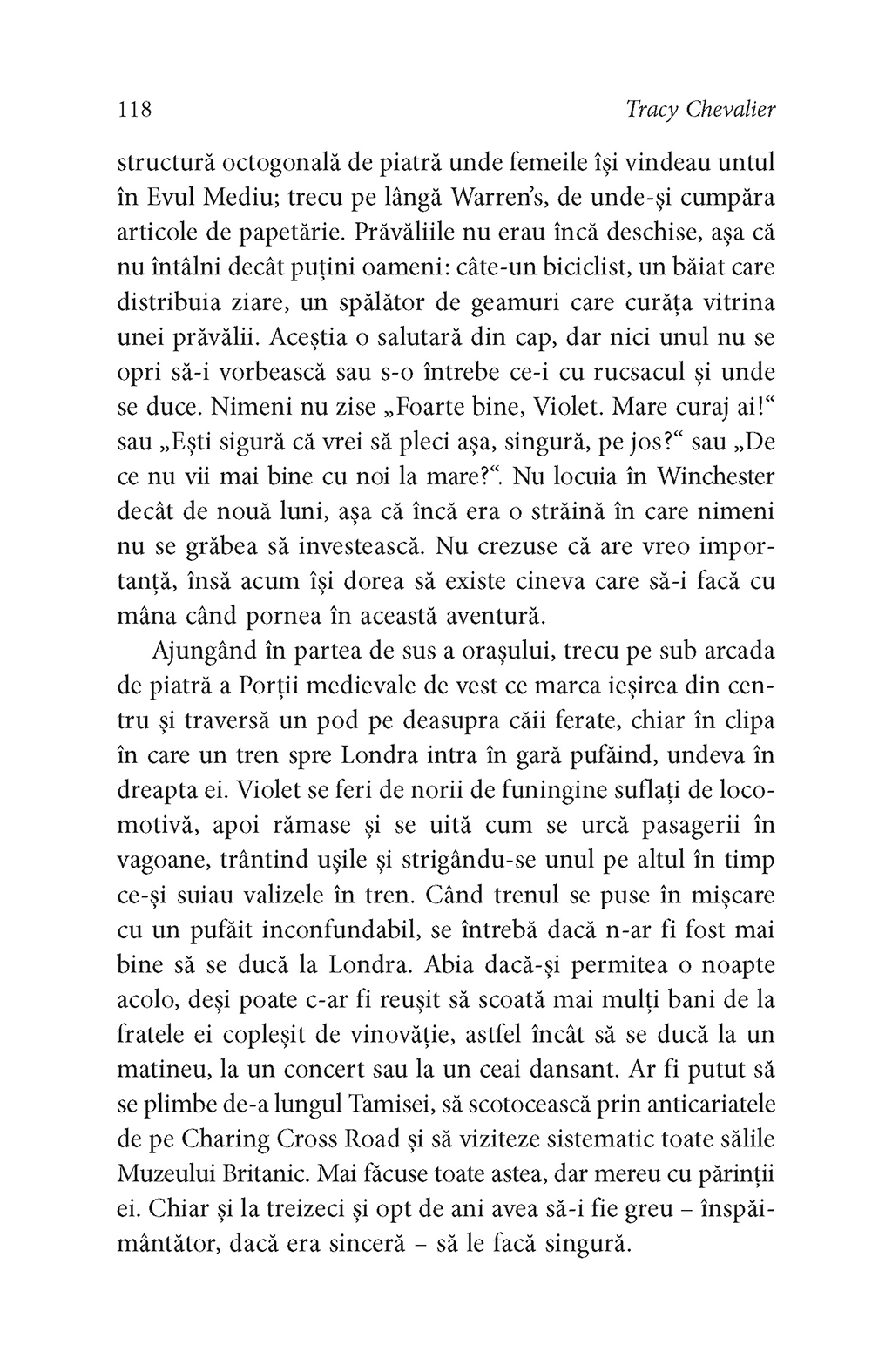 „În vremuri potrivnice, Tracy Chevalier ne oferă un moment de respiro binevenit... cu maniere şi scene ce stîrnesc chicoteli molipsitoare de care Jane Austen ar fi mîndră.” (USA Today)