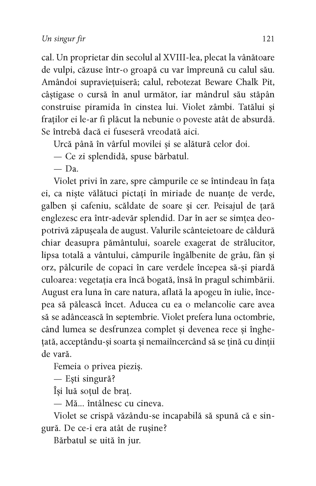 „Delicateţea cu care Tracy Chevalier tratează povestea de dragoste a lui Violet e fără cusur... Un singur fir e un roman fascinant despre cum poţi crea ceva durabil începînd cu o mică împunsătură de ac.” (NPR)