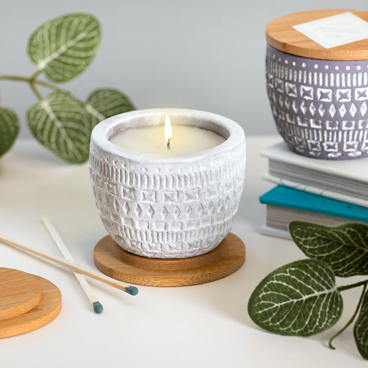 O lumânare cu aromă încântătoare de Bumbac și Tec.