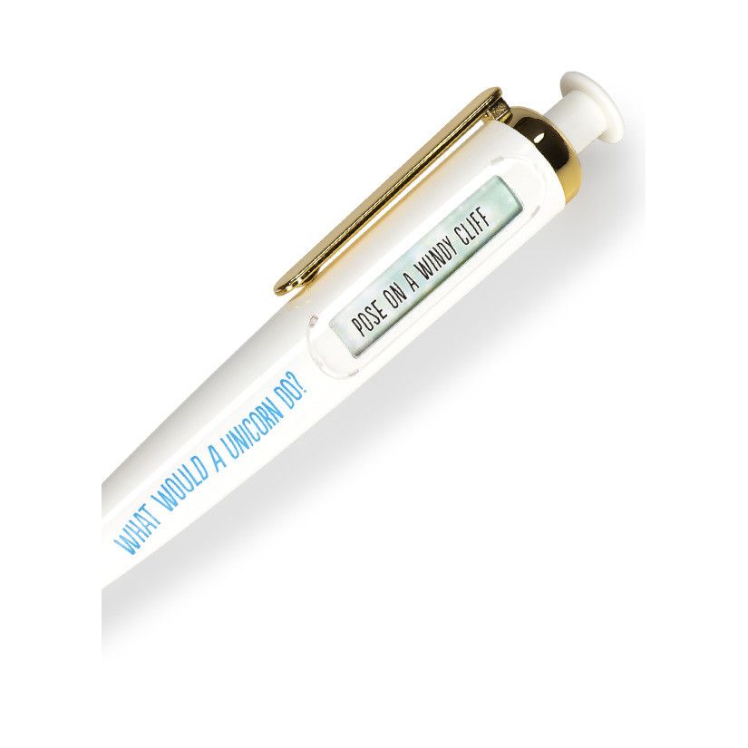 Daca ai nevoie sa iti recapeti increderea in magie, pixul „Ce ar face un unicorn?” este aici ca sa te ajute! Tot ce trebuie sa faci este sa il apesi pentru a afla ce activitate curcubeieasca ar intreprinde un unicorn si apoi sa faci ca el!