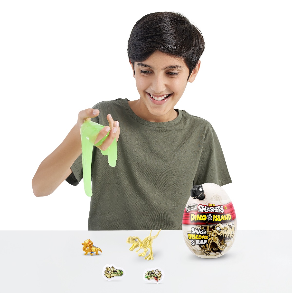 Zdrobeste-ti drumul catre o aventura epica preistorica cu pachetul surpriza Smashers Dino Island Nano Egg! SPARGE oul in bucati pentru a descoperi cele 6 surprize ascunse in interior. Cauta prin slime-ul super elastic pentru a descoperi oasele de dinozaur si construieste-ti noul prieten fosilizat! Exista 5 dinozauri de construit si colectionat, inclusiv ultra-rarul T-Rex de aur!