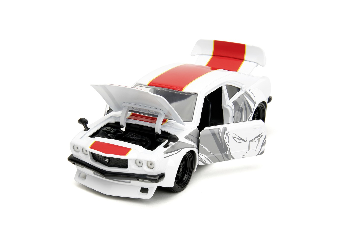 Set Jada format din figurina One-Punch Man si masina Mazda RX-3 din 1974 . Masina din metal, la scara 1:24, lungime 20 cm, usile, portbagajul si capota se pot deschide. Setul include si o figurina din metal One Punch Man.