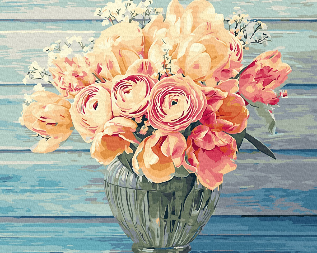 Set pictură pe numere - Flori pastelate; Dimensiune: 40x50 cm