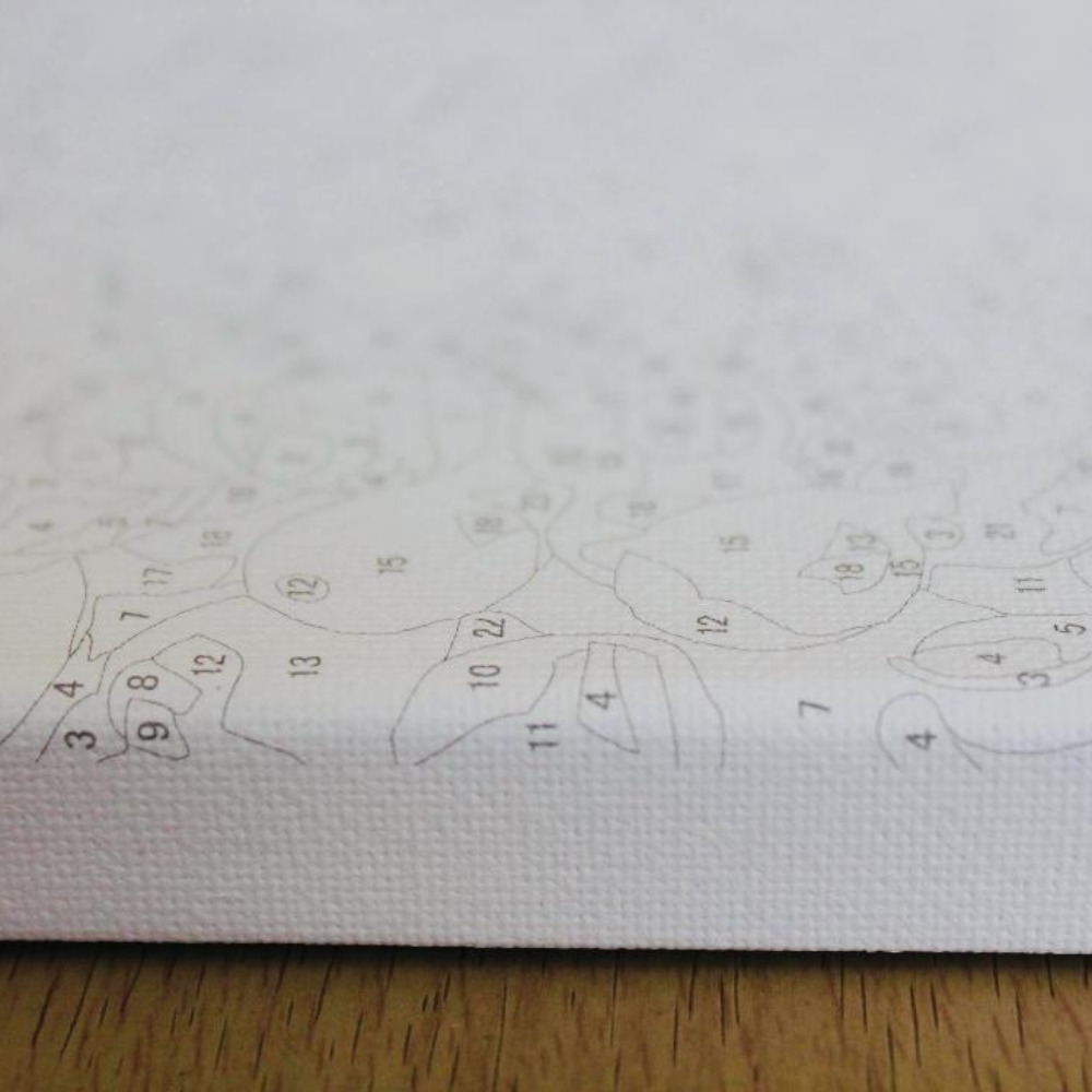 - pânză de bumbac fixată pe o ramă din lemn cu desen conturat în numere;