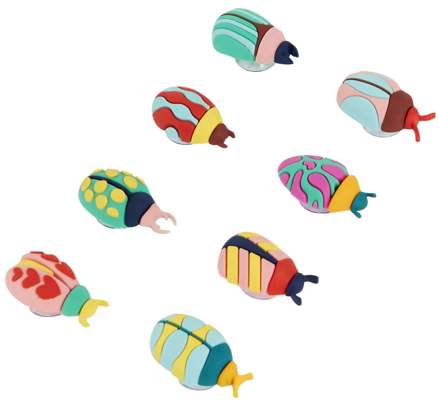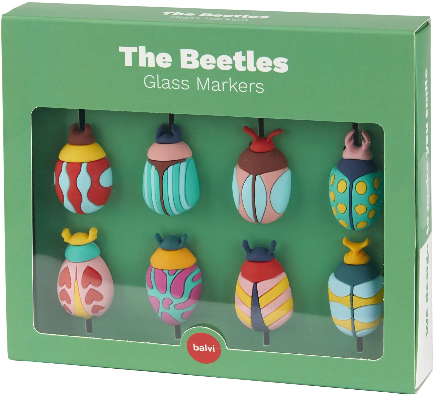 - Set de 8 marcatoare pentru pahare „The Beetles” în culori vii, cu design de gândăcei