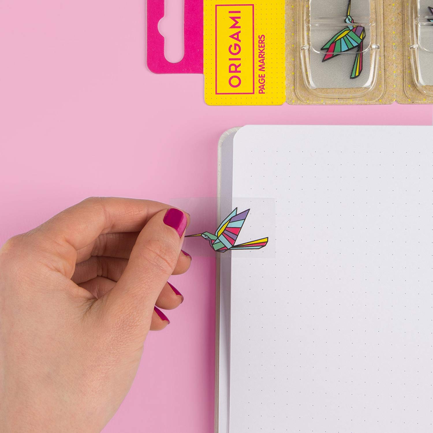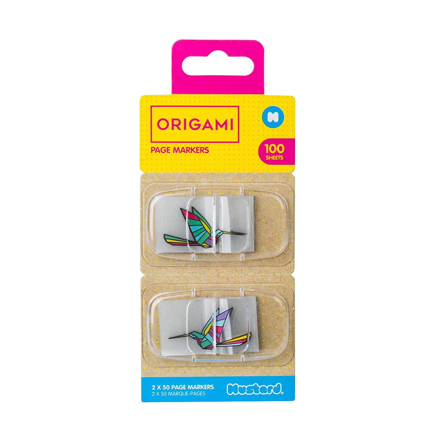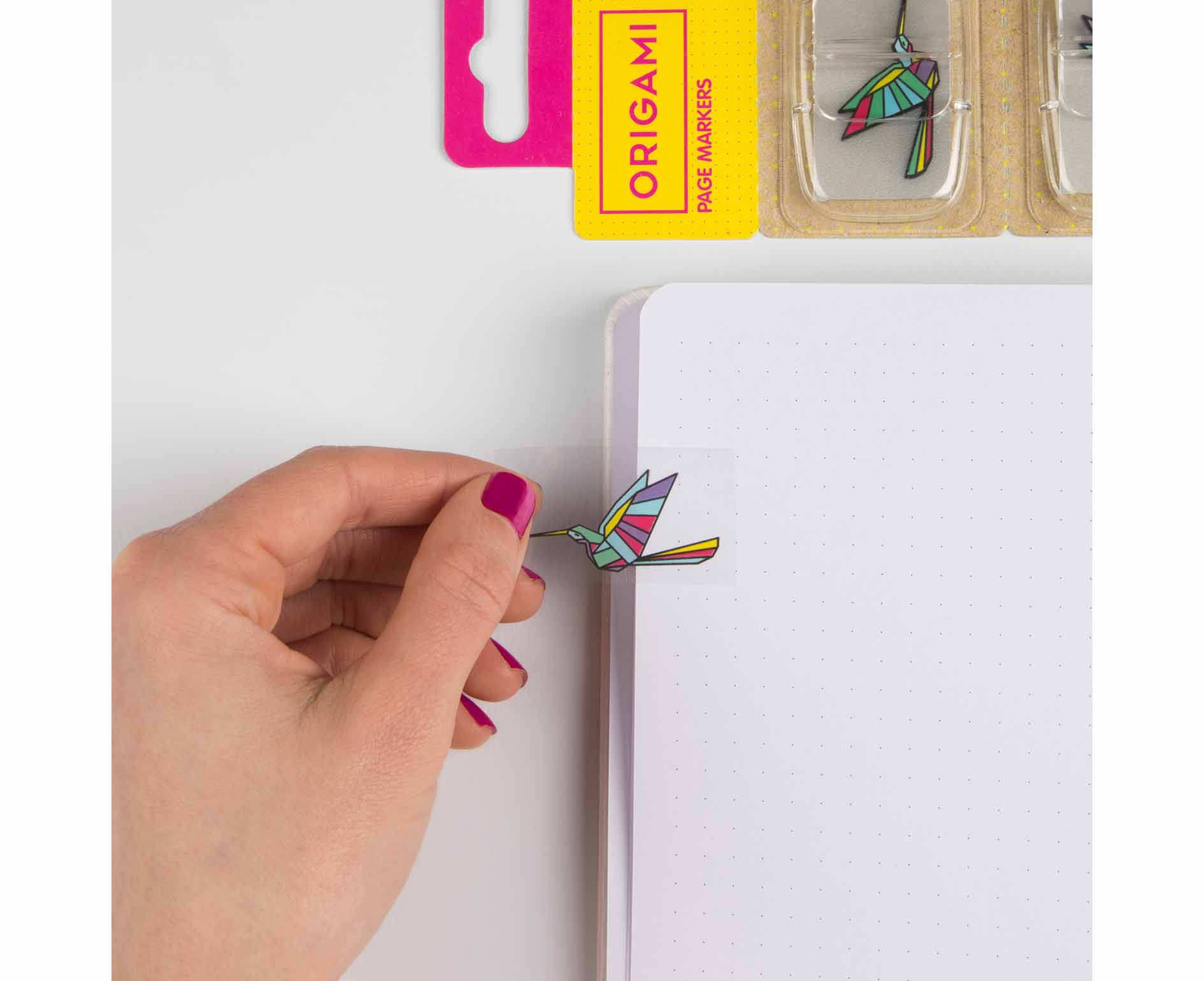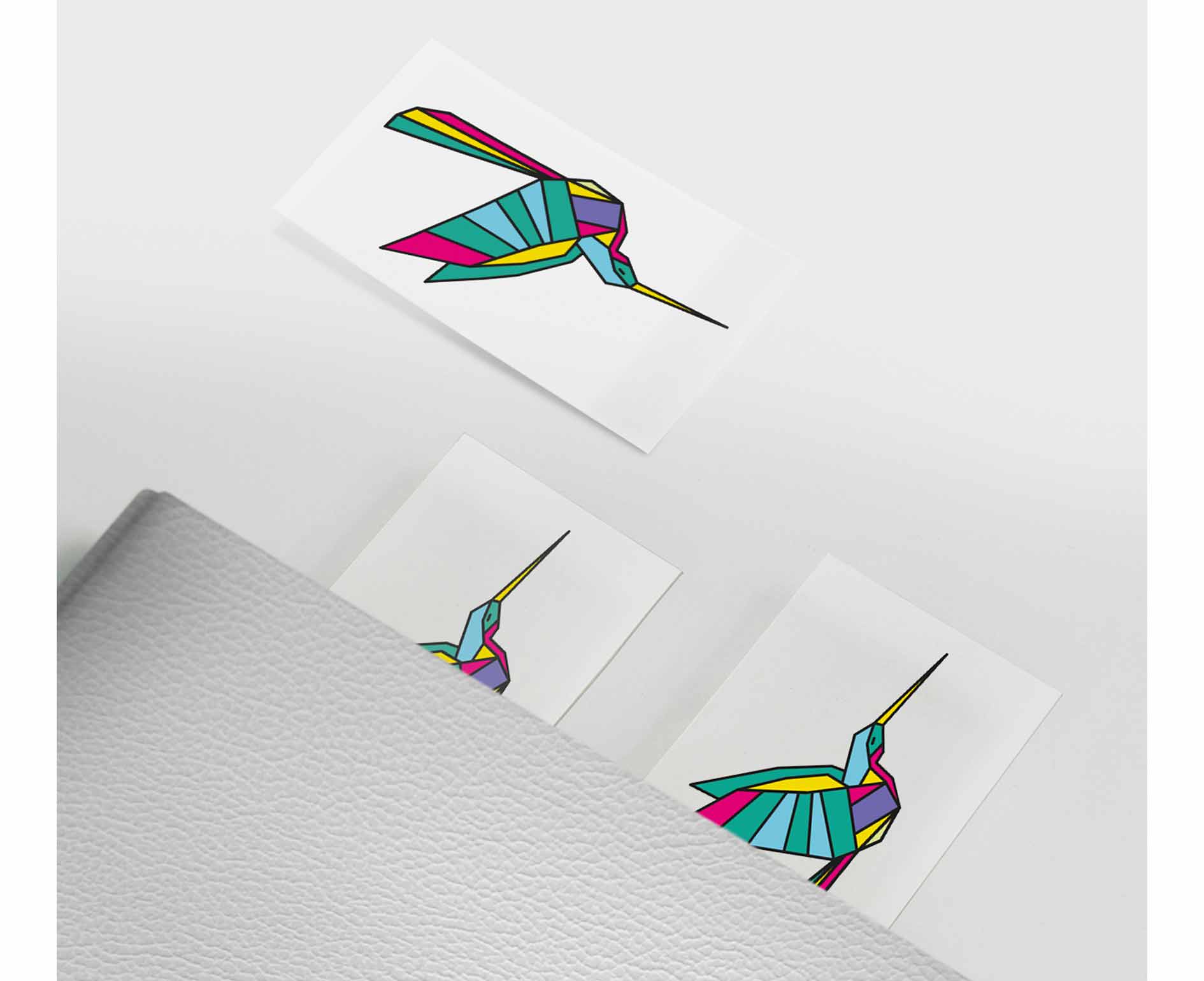 Set de 100 de semne de carte din hârtie imprimate cu un model de pasăre colibri confecționat din origami.