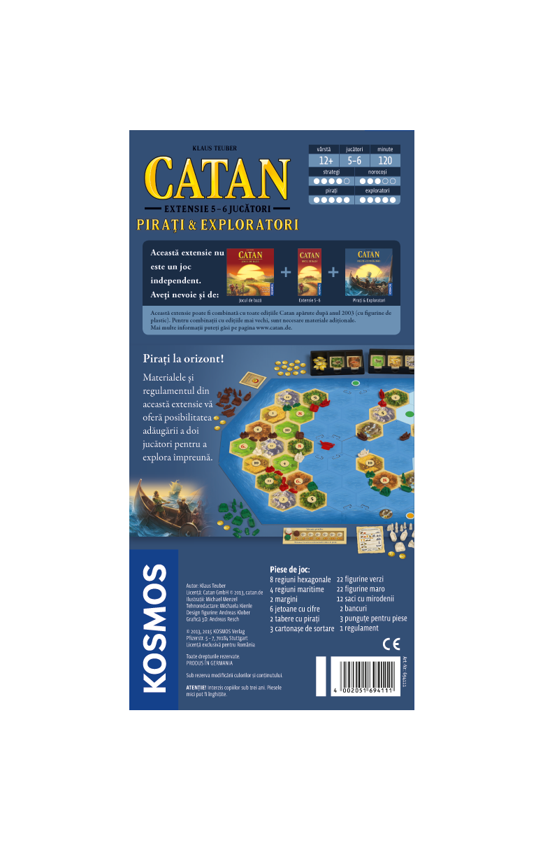 Această extensie nu este un joc complet. Pentru a putea să o folosiţi mai aveţi nevoie de „Catan - jocul de bază“, „Extensia pentru 5/6 jucători“ a jocului de bază şi extensia „Piraţi&Exploratori“. Această extensie este compatibilă cu toate ediţiile anterioare ale jocurilor Catan care conţin figurine din plastic. Nu este compatibilă cu jocurile care conţin figurine din lemn.
