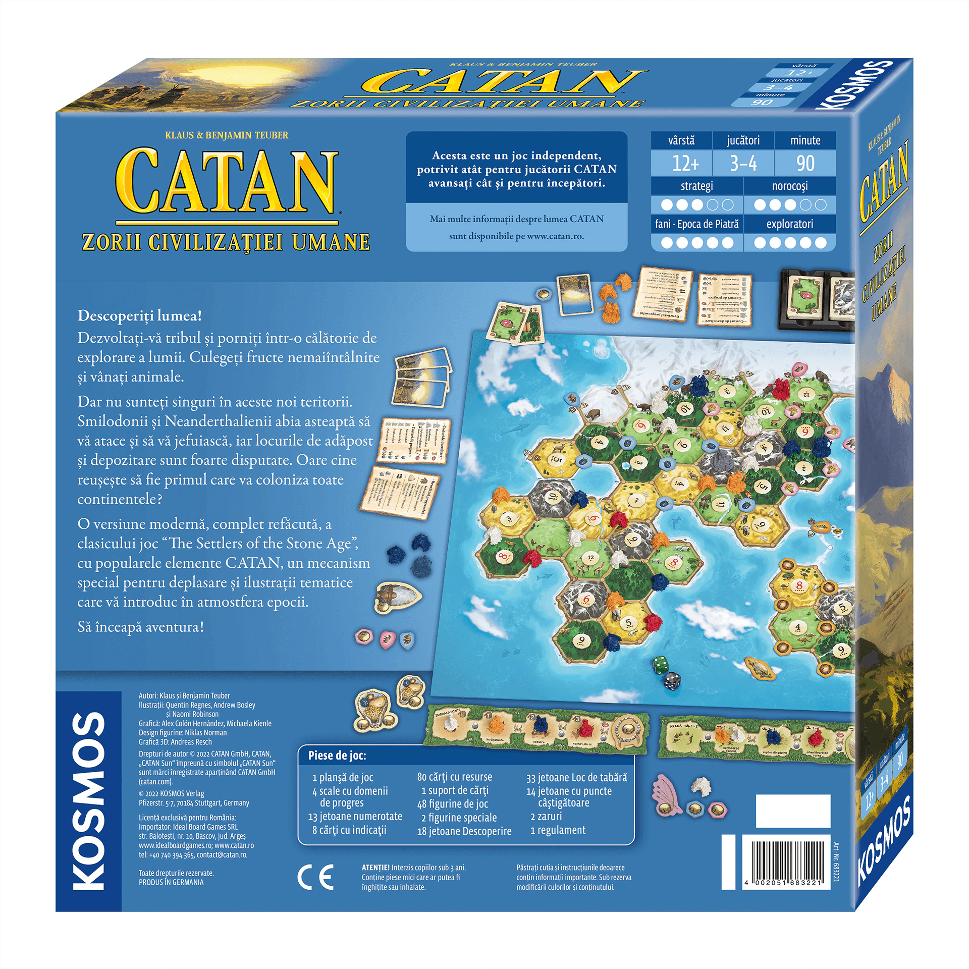 O versiune moderna, complet refacuta, a clasicului joc “The Settlers of the Stone Age”, cu popularele elemente CATAN, un mecanism special pentru deplasare si ilustratii tematice care va introduc in atmosfera epocii.