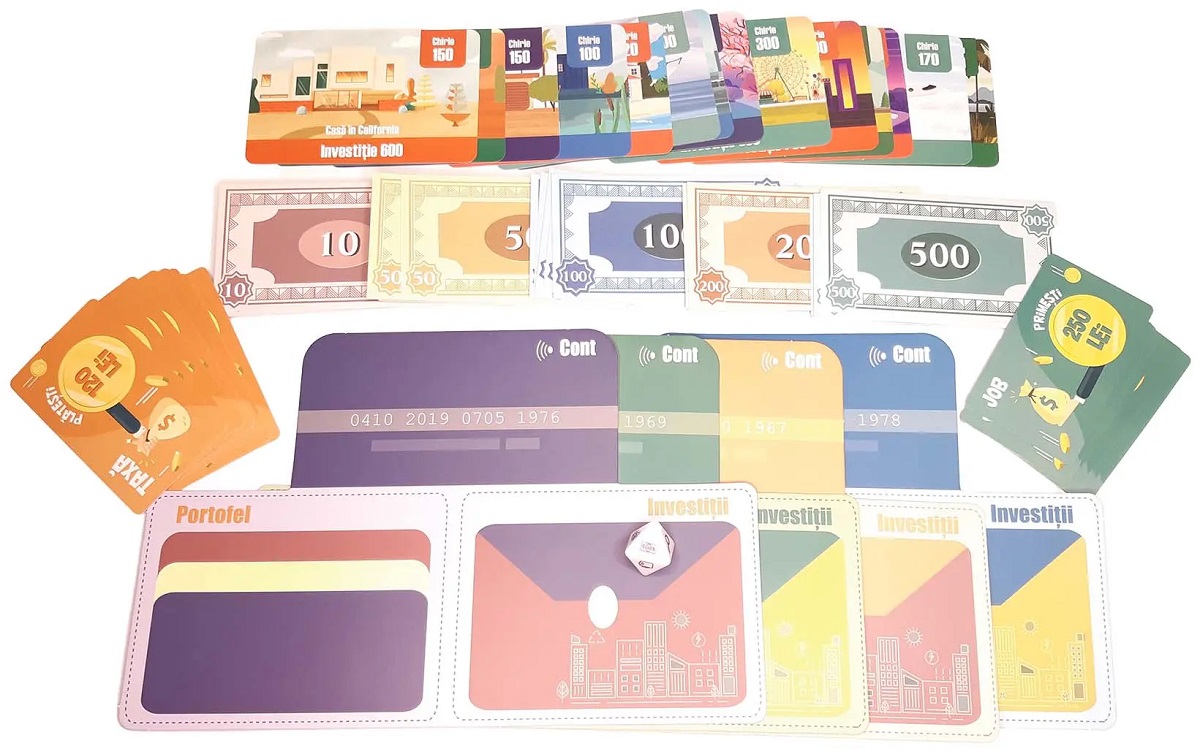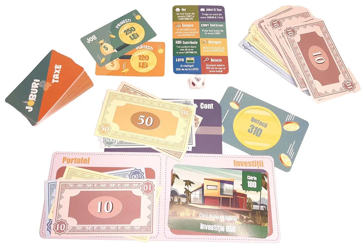 Jocul contine:Valorile banilor din joc sunt echivalente cu cele ale bancnotelor aflate in circulatie, iar asta te poate ajuta sa gestionezi un buget adevarat! Asadar, chibzuieste-ti banii, investeste-i in proprietati si devino cel mai bun afacerist din grup!