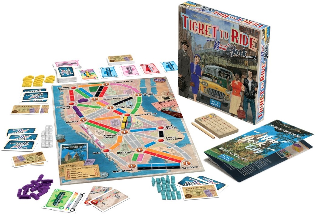 In acest joc rapid de Ticket to Ride, jucatorii se intrec pe strazile aglomerate din New York City pentru a vizita cele mai prestigioase Atractii Turistice si pentru a-si completa Traseele. Modul simplu de joc este atragator atat pentru incepatori, cat si pentru jucatorii experimentati. il invatati in 3 minute, il veti juca ore intregi!