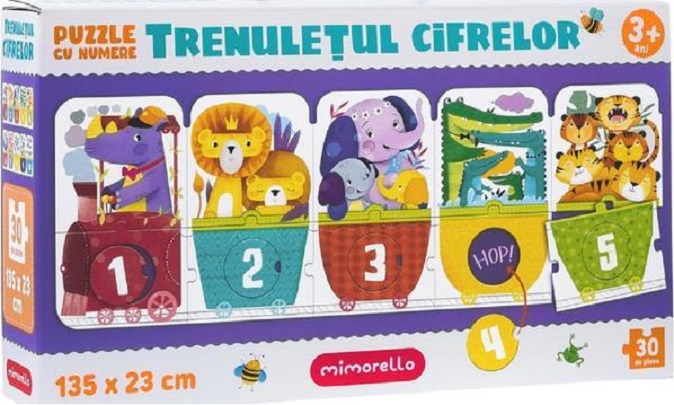 Este jocul ideal prin care cei mici pot porni in prima lor calatorie prin lumea cifrelor. Acest puzzle ii ajuta sa invete sa numere, dar si sa deprinda mai usor abilitatea de a asocia cifrele cu cantitatile reprezentate. Copiii vor monta trenuletul, aranjand vagoanele in ordinea crescatoare a cifrelor, iar apoi vor gasi calatorii potriviti pentru fiecare va