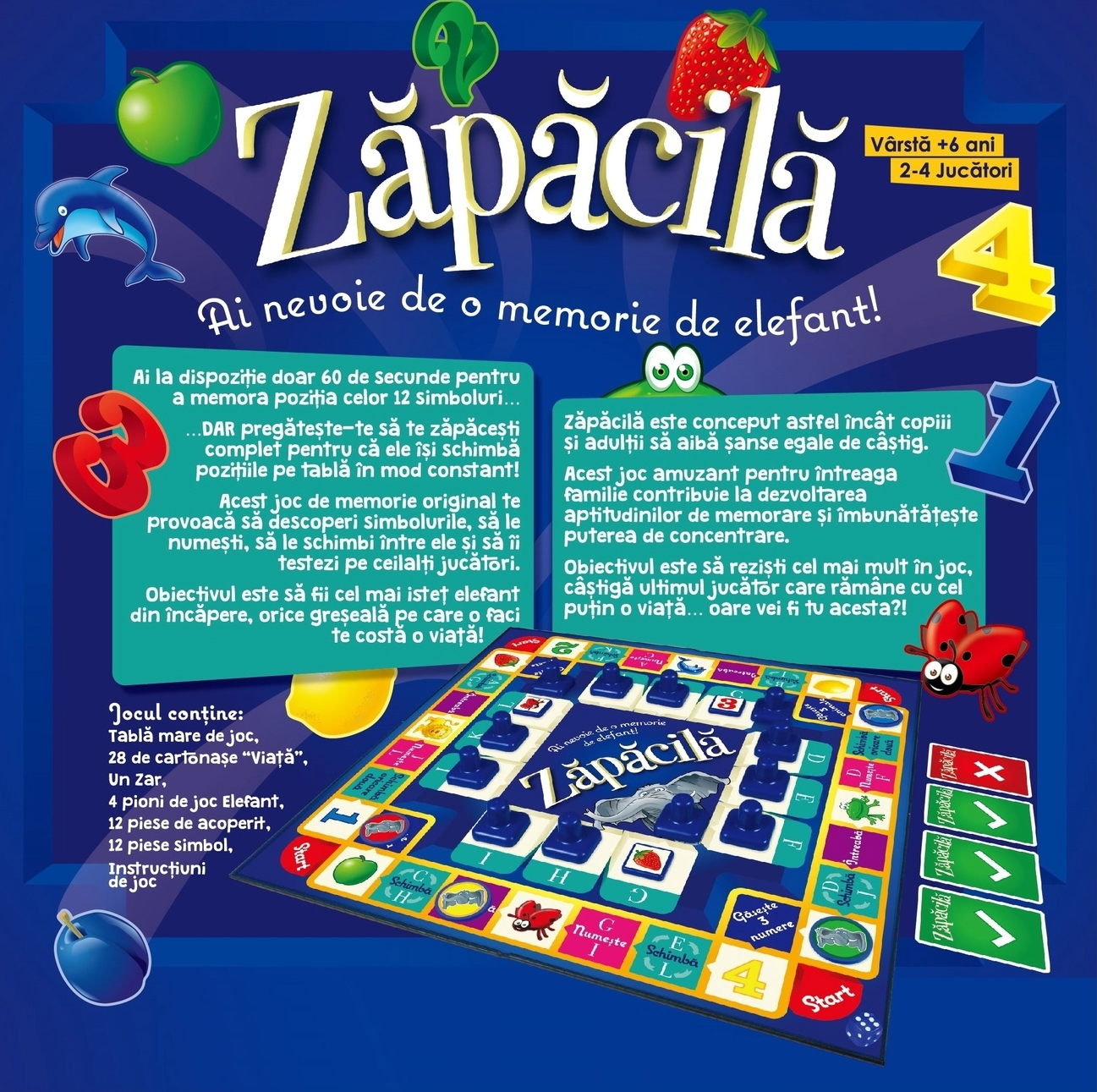 Zapacila este un joc ingenios de memorie si concentrare, distractiv pentru orice copil sau adult care isi incearca sa obtina o memorie… de elefant!