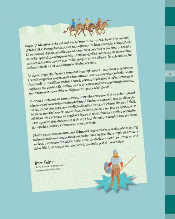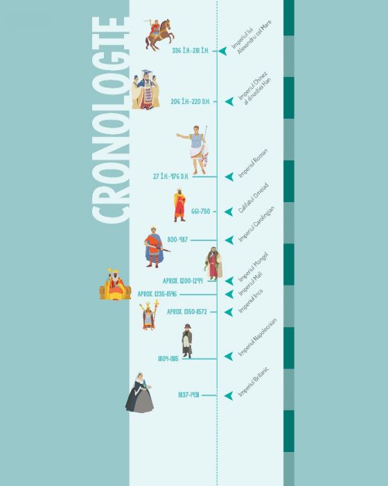 Imperiul lui Alexandru cel Mare, Imperiul Chinez al dinastiei Han, Imperiul Roman, Califatul Omeiad, Imperiul Carolingian, Imperiul Mongol, Imperiul Mali, Imperiul Inca, Imperiul Napoleonian şi Imperiul Britanic: 10 mari imperii care sunt prezentate în această carte. Ele ne-au format istoria, cultura şi au modelat civilizaţiile