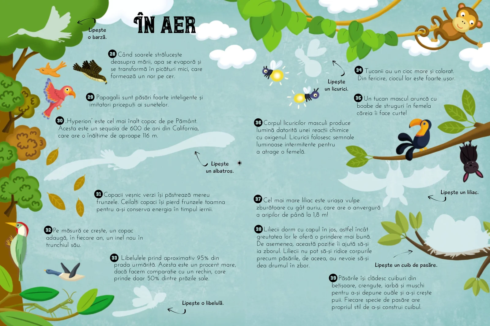 Descoperă aceste lucruri și alte 97 de curiozități uimitoare despre natură în această carte cu autocolante. Potrivește autocolantele la informațiile corespunzătoare și pornește în antrenanta aventură de explorare a naturii!