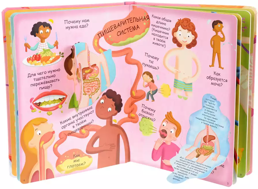 Знаешь ли ты, почему твоя кровь красная, что происходит с едой, которую ты ешь, где находится мозг, как двигаются руки и ноги и почему ты можешь видеть сны? И это далеко не всё самое интересное! Твоё тело скрывает множество секретов. Интересные факты о твоём теле спрятаны за волшебными створочками этой книги. Рассматривай картинки, отвечай на вопросы, а 60 волшебных окошек помогут тебе получше познакомиться с тем, как устроено твоё тело и что происходит с ним в течение жизни.