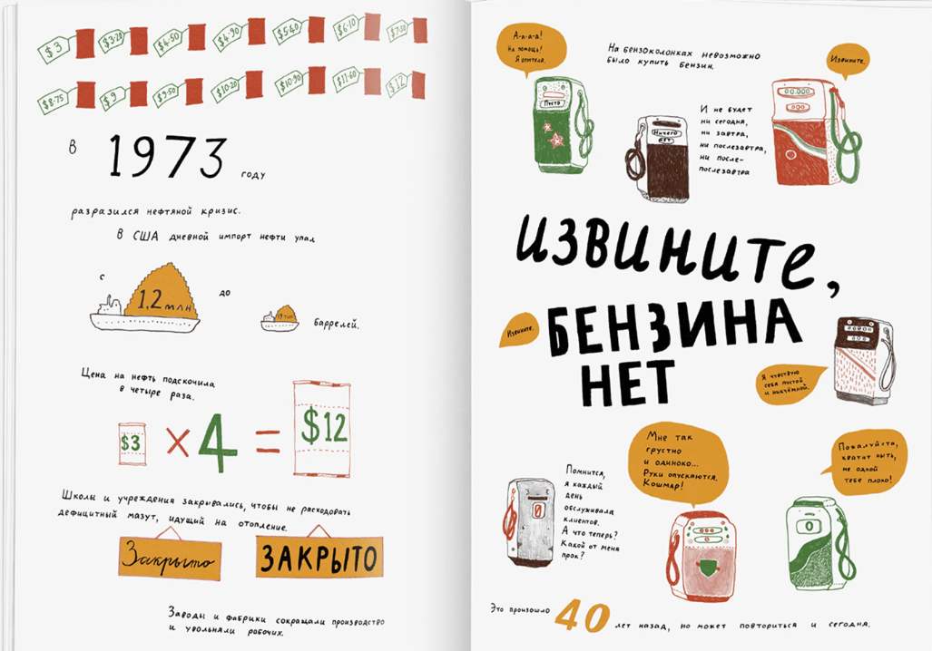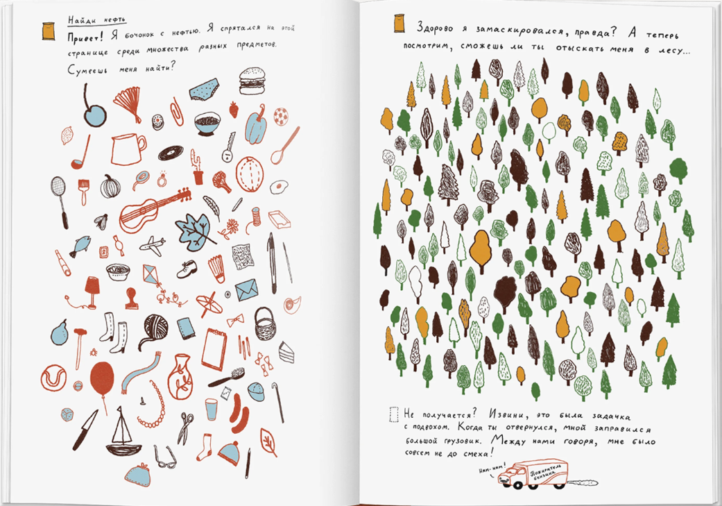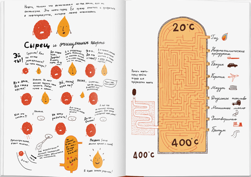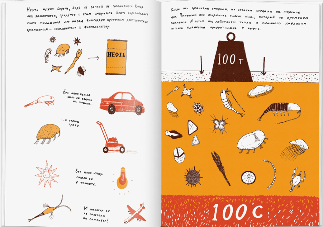Иллюстрированная книга о том, как добывают нефть, как мы можем уменьшить нашу зависимость от нее, почему нам стоит перейти на альтернативные способы добычи топлива и уделять больше внимания проблеме раздельного сбора и переработки мусора.