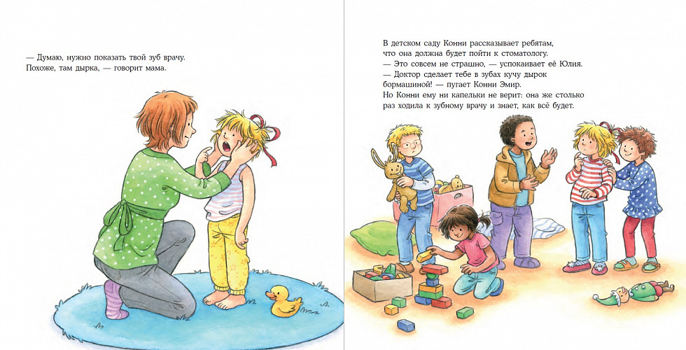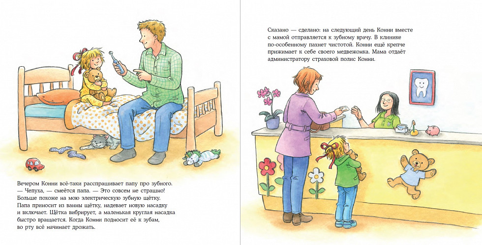 Бывает, что кариес появляется на зубах даже у самых ответственных малышей, которые чистят зубы каждый день. И тогда обязательно надо пойти к врачу, чтобы вылечить больной зуб. Вот и Конни отправляется с мамой к стоматологу. И хотя она здесь не первый раз, лечение зуба - волнительный процесс. Вместе с Конни ваш малыш убедится, что зубной врач - это совсем не страшно, и проверит, правильно ли он чистит зубы.