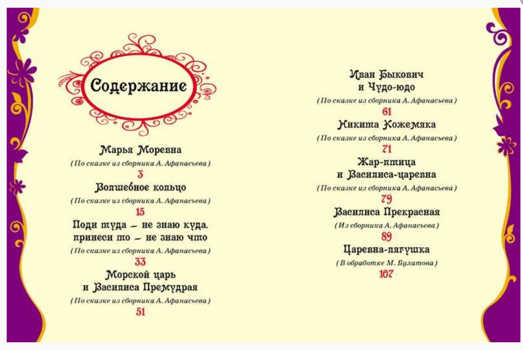 В книгу вошли самые известные русские волшебные сказки: «Марья Моревна», «Волшебное кольцо», «Поди туда – не знаю куда, принеси то – не знаю что», «Морской царь и Василиса Премудрая», «Иван Быкович и Чудо-юдо», «Никита Кожемяка», «Жар-птица и Василиса-царевна», «Царевна-лягушка». Яркие иллюстрации на каждой странице. Крупный шрифт. Тексты сказок адаптированы для детей от 3 до 5 лет. Художник – В. Нечитайло.