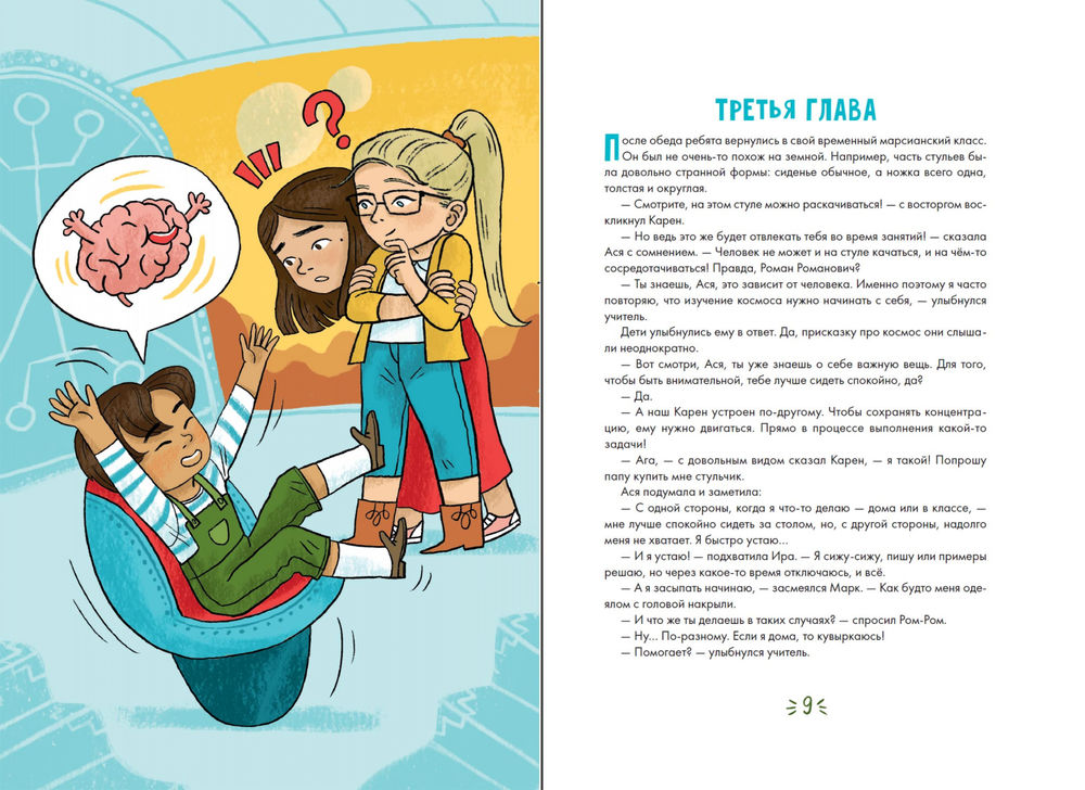 В космическом корабле на экскурсию на Марс летят ученики 303 Z класса. Девиз их учителя: «Исследование космоса нужно начинать с себя!» Эта мотивирующая история поможет детям поставить четкие цели, объяснит, как сохранять концентрацию на уроках и не допускать ошибок в контрольных и расскажет, как не тратить много времени на соцсети и телевизор.