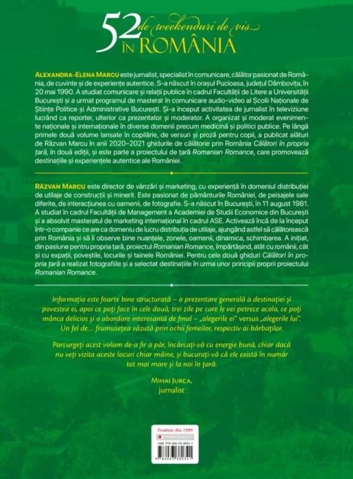 Răzvan Marcu este director de vânzări și marketing, cu experiență în domeniul distribuției de utilaje de construcții și minerit. Este pasionat de pământurile României, de peisajele sale diferite, de interacțiunea cu oamenii, de fotografie. S-a născut în București, în 11 august 1981. A studiat în cadrul Facultății de Management a Academiei de Studii Economice din București și a absolvit masteratul de marketing internațional în cadrul ASE. Activează încă de la început într-o companie ce are ca domeniu de lucru distribuția de utilaje, ajungând astfel să călătorească prin România și să îi observe bine nuanțele, zonele, oamenii, dinamica, schimbarea. A inițiat, din pasiune pentru propria țară, proiectul Romanian Romance, împărtășind, atât cu românii, cât și cu expații, poveștile, locurile și tainele României. Pentru cele două ghiduri Călători în propria țară a realizat fotografiile și a selectat destinațiile în urma unor principii proprii proiectului Romanian Romance.