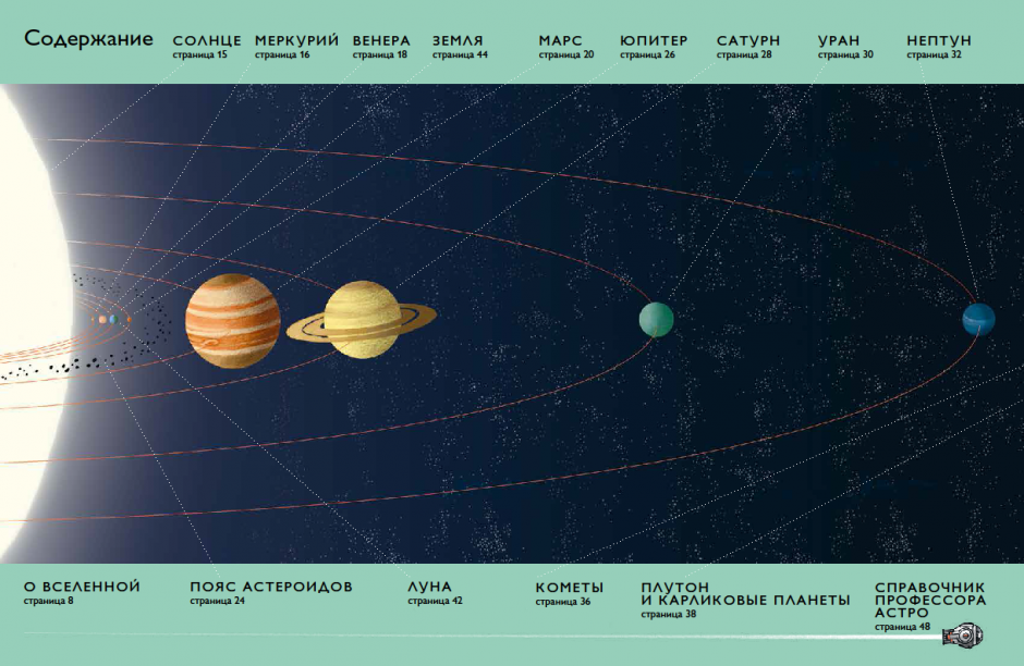 Почему Уран голубого цвета? Откуда у Сатурна кольца? Что за таинственное пятно на по- верхности Юпитера? Отправляйся в космическое путешествие вместе с профессором Астро и его юными помощниками – Джеком и Юни. Вместе вы побываете во всех уголках Солнеч- ной системы и найдёте ответы на все вопросы. Эта книга расскажет вам об устройстве Сол- нечной системы, о происхождении планет, астероидов и комет и о многом другом, что может встретиться вам в открытом космосе. Для младшего и среднего школьного возраста