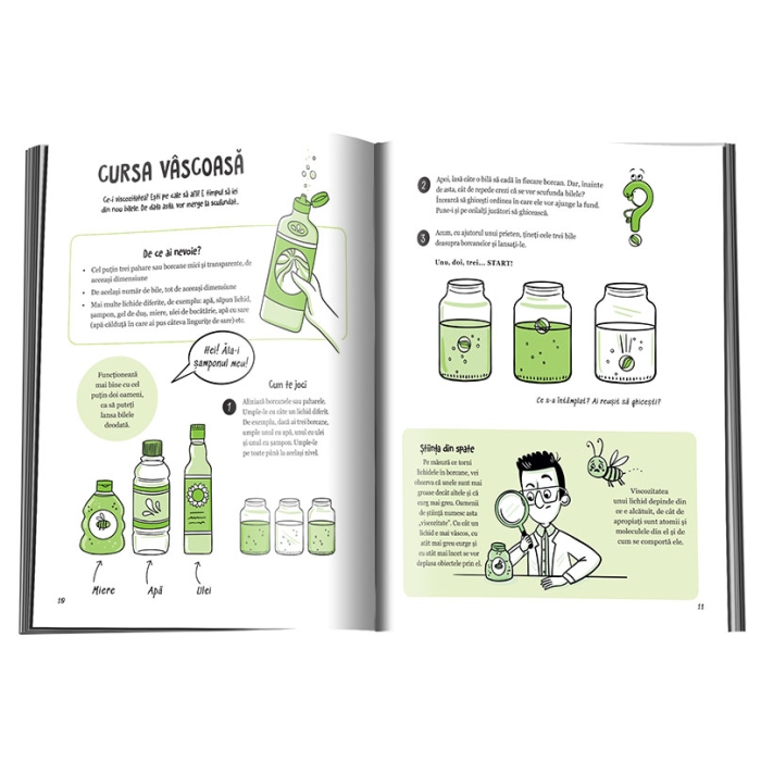 Fie că îți plac deja științele sau doar vrei să încerci ceva nou, această carte garantat îți va oferi ore întregi de distracție, punând, totodată, biologia, chimia și fizica într-o cu totul altă lumină! Cum joci fotbal magnetic? Poți să construiești un zgârie-nori din marshmallow-uri și spaghete? Află toate astea din paginile cărții și pregătește-te SĂ RĂMÂI FĂRĂ CUVINTE!