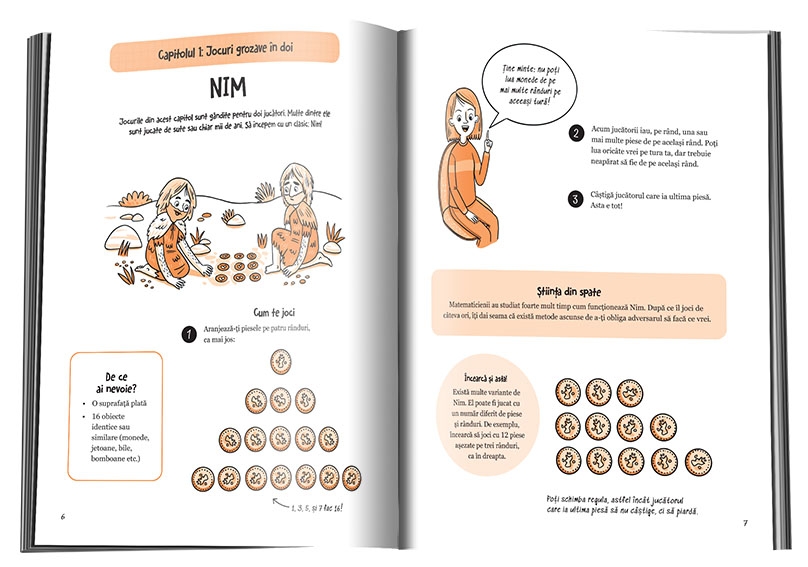 În paginile cărții vei descoperi informații uluitoare, activități fascinante și trucuri ciudate. Te vei distra folosind matematica ca să creezi coduri indescifrabile și să explorezi șiruri numerice stranii – toate astea în timp ce-ți surprinzi prietenii și familia cu noile tale puteri matematice de citit mințile!