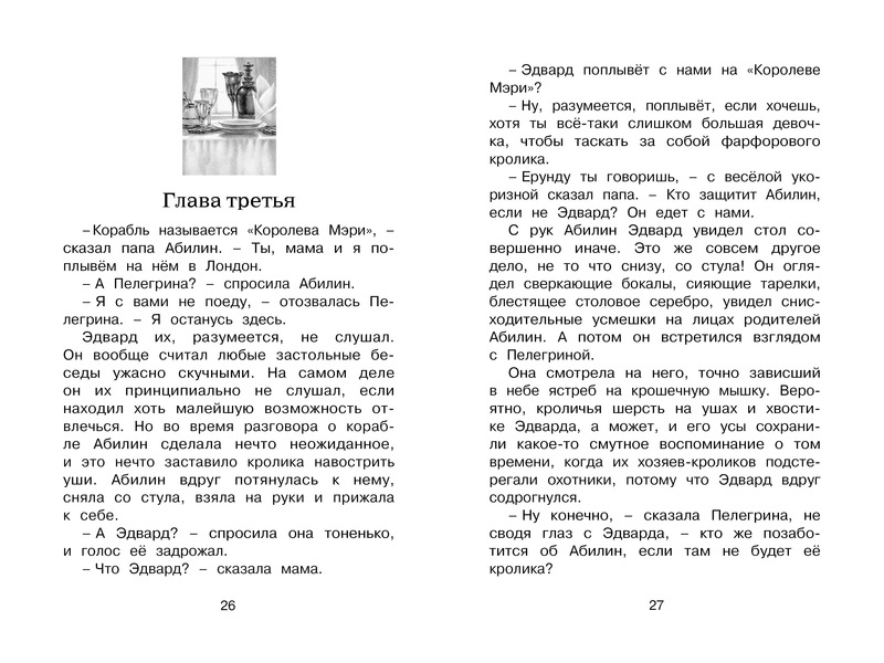 Эта печальная, но светлая история кролика Эдварда не оставит равнодушным ни взрослых, ни детей. Любовь, доброта, сострадание – вот главные темы повести, которая обязательно тронет сердце читателей.