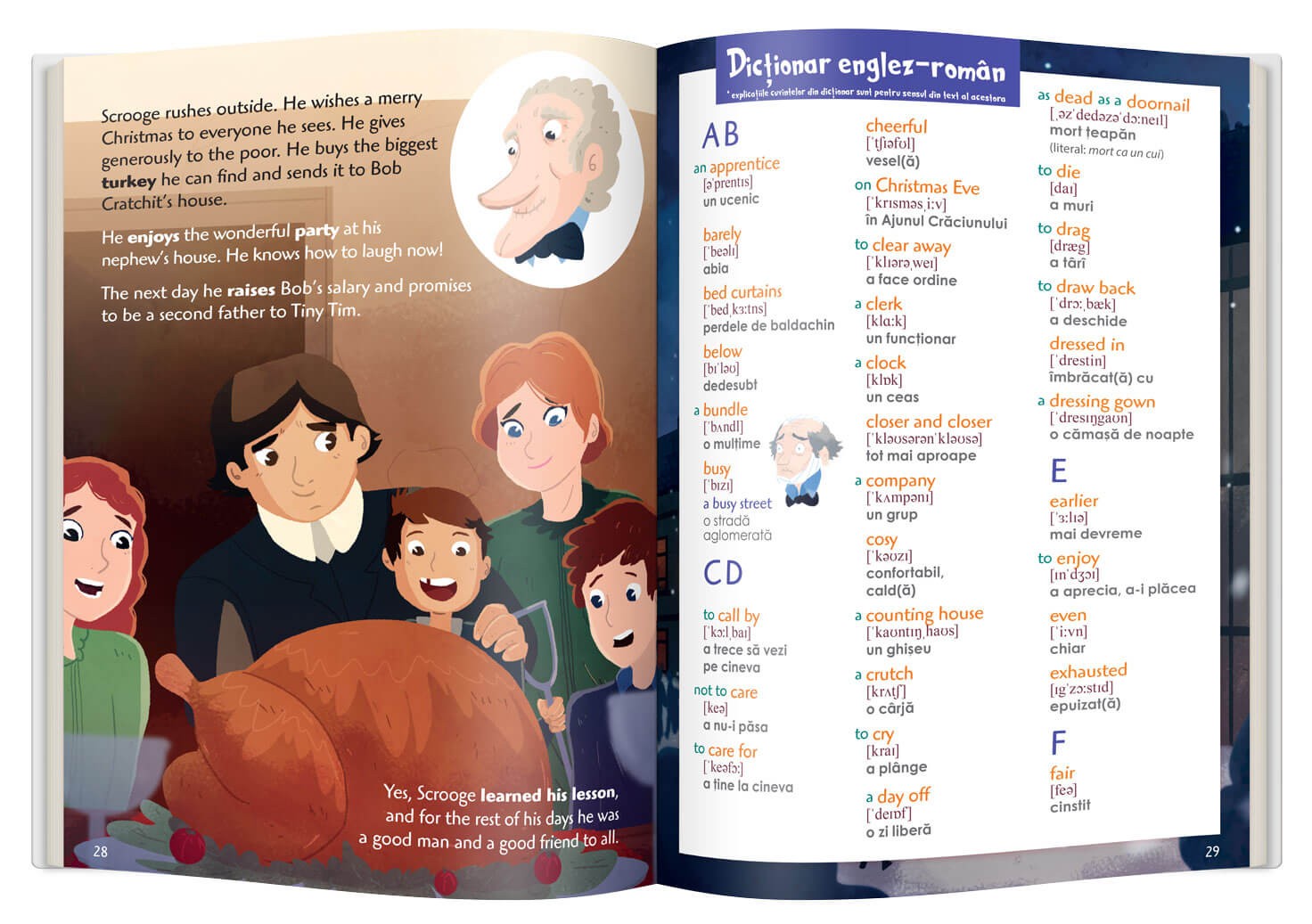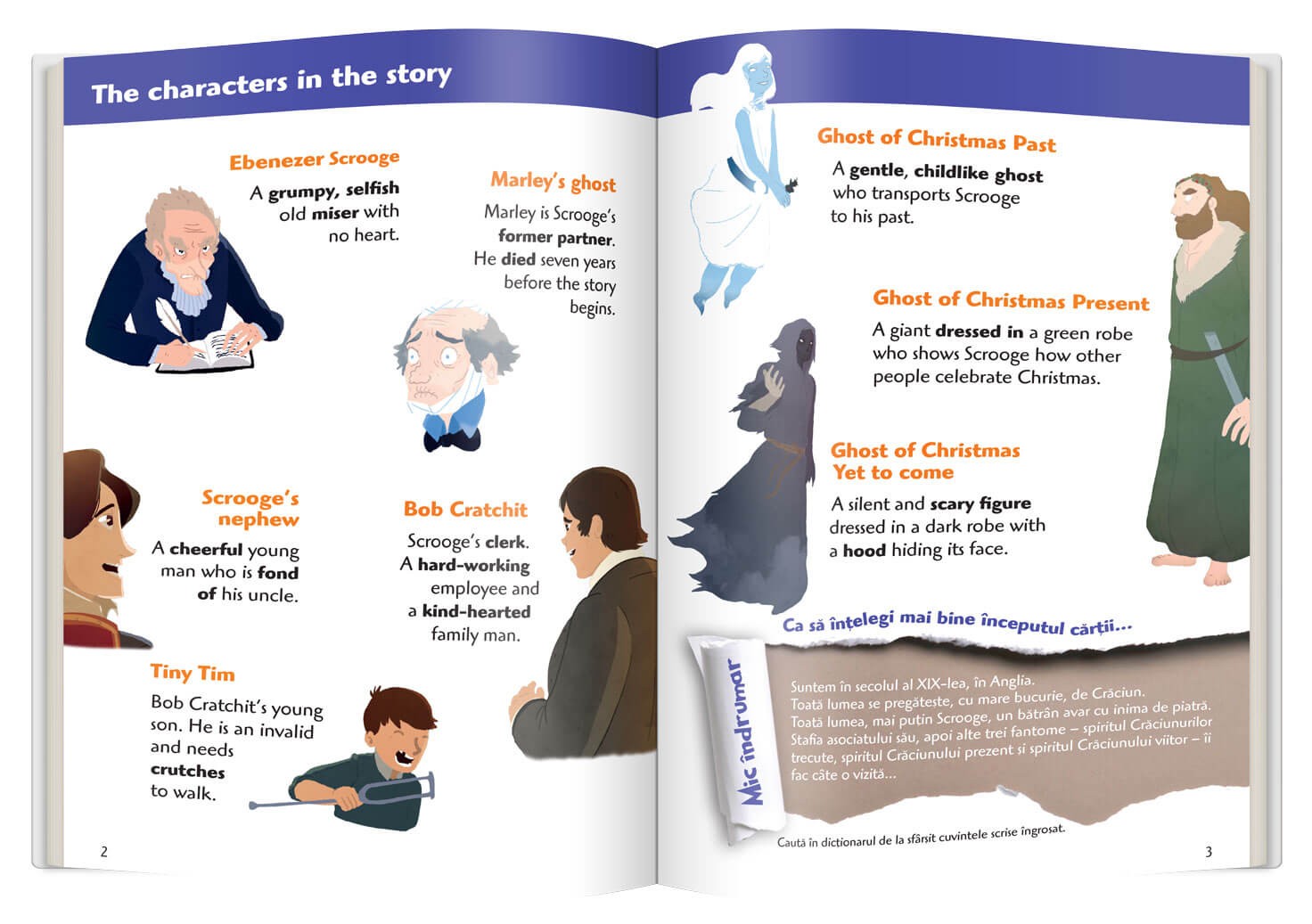 - dicționar englez-român la sfârșitul fiecărui volum, ca să înțelegi mai bine textul.