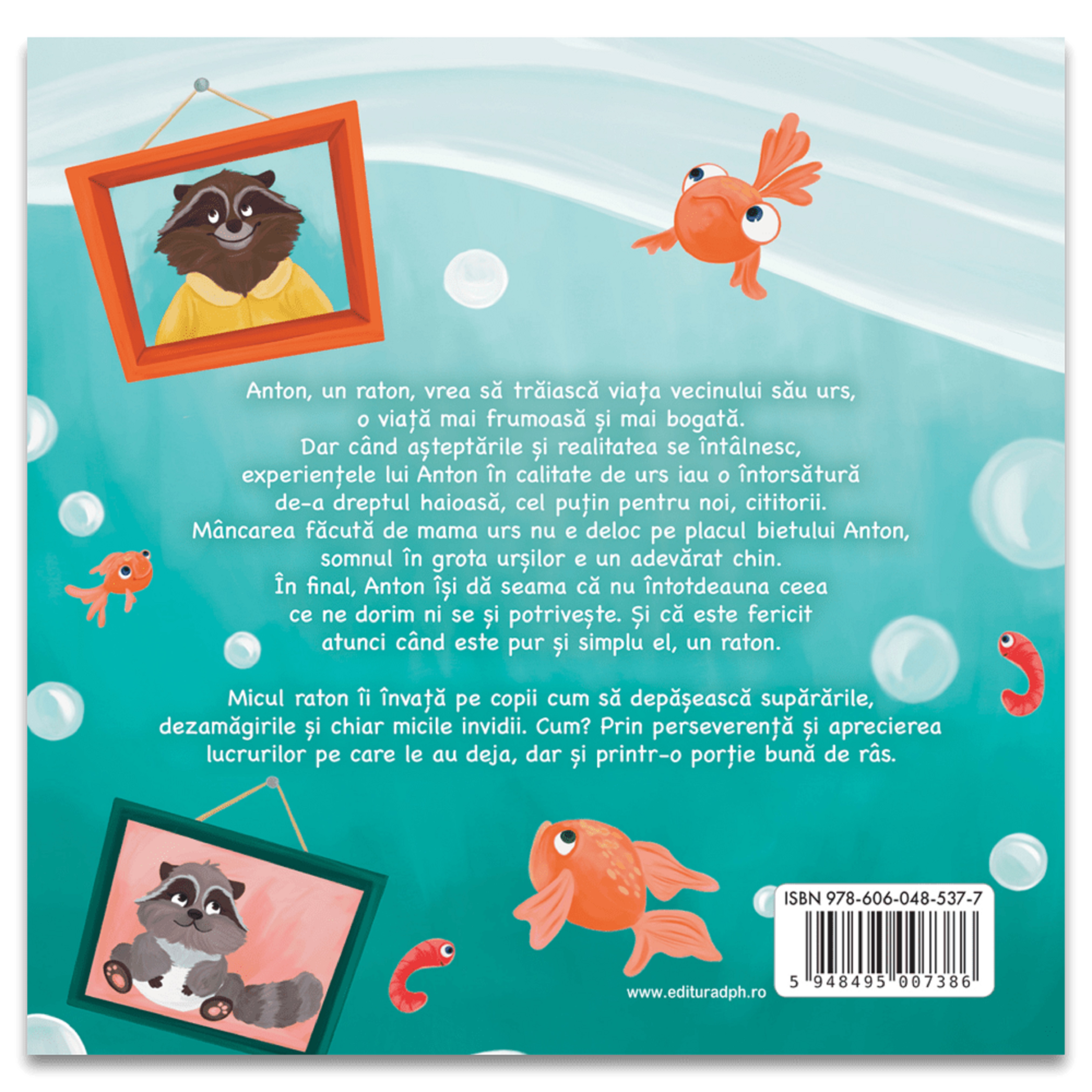 Dar când așteptările și realitatea se întâlnesc, experiențele lui Anton în calitate de urs iau o întorsătură de-a dreptul haioasă, cel puțin pentru noi, cititorii. Mâncarea făcută de mama urs nu e deloc pe placul bietului Anton, somnul în grota urșilor e un adevărat chin și unde mai pui că ratonul se dovedește un pescar cam… nepriceput.